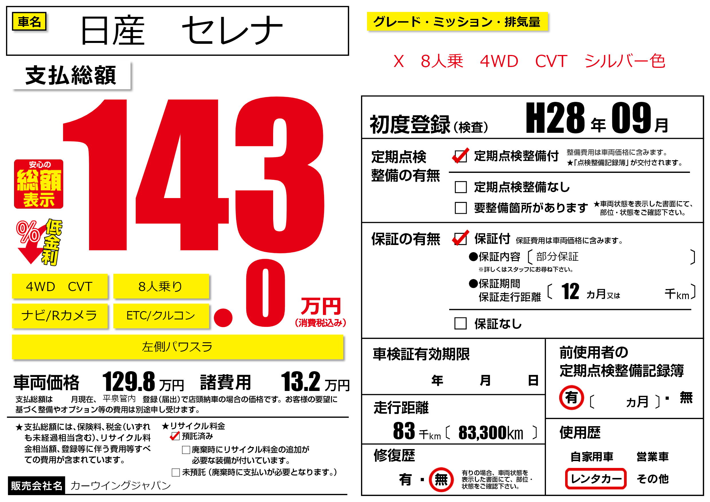 | 走行キロ | 8.3万km | ||