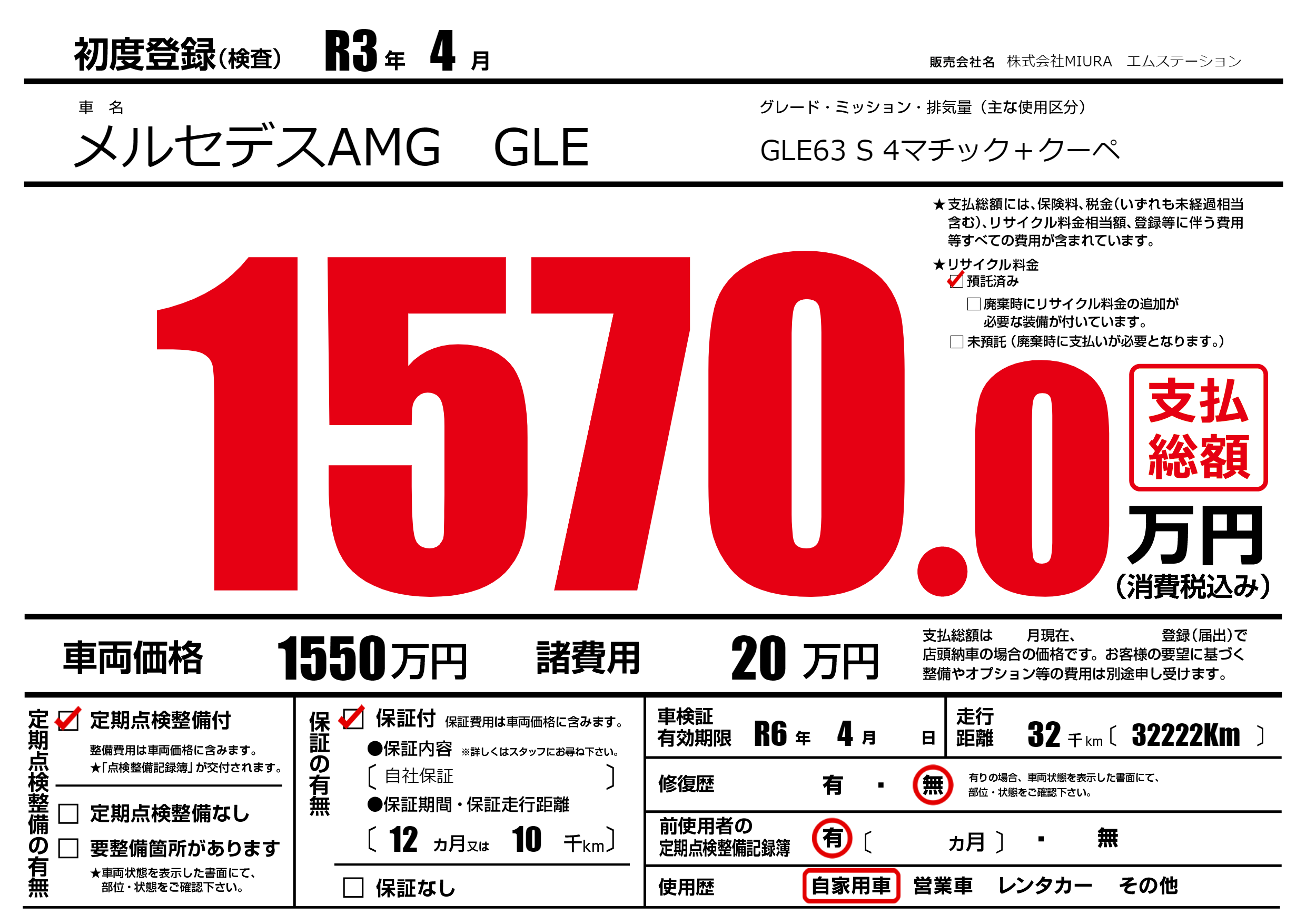 なし | 車検制限 | R6年4月---月 |