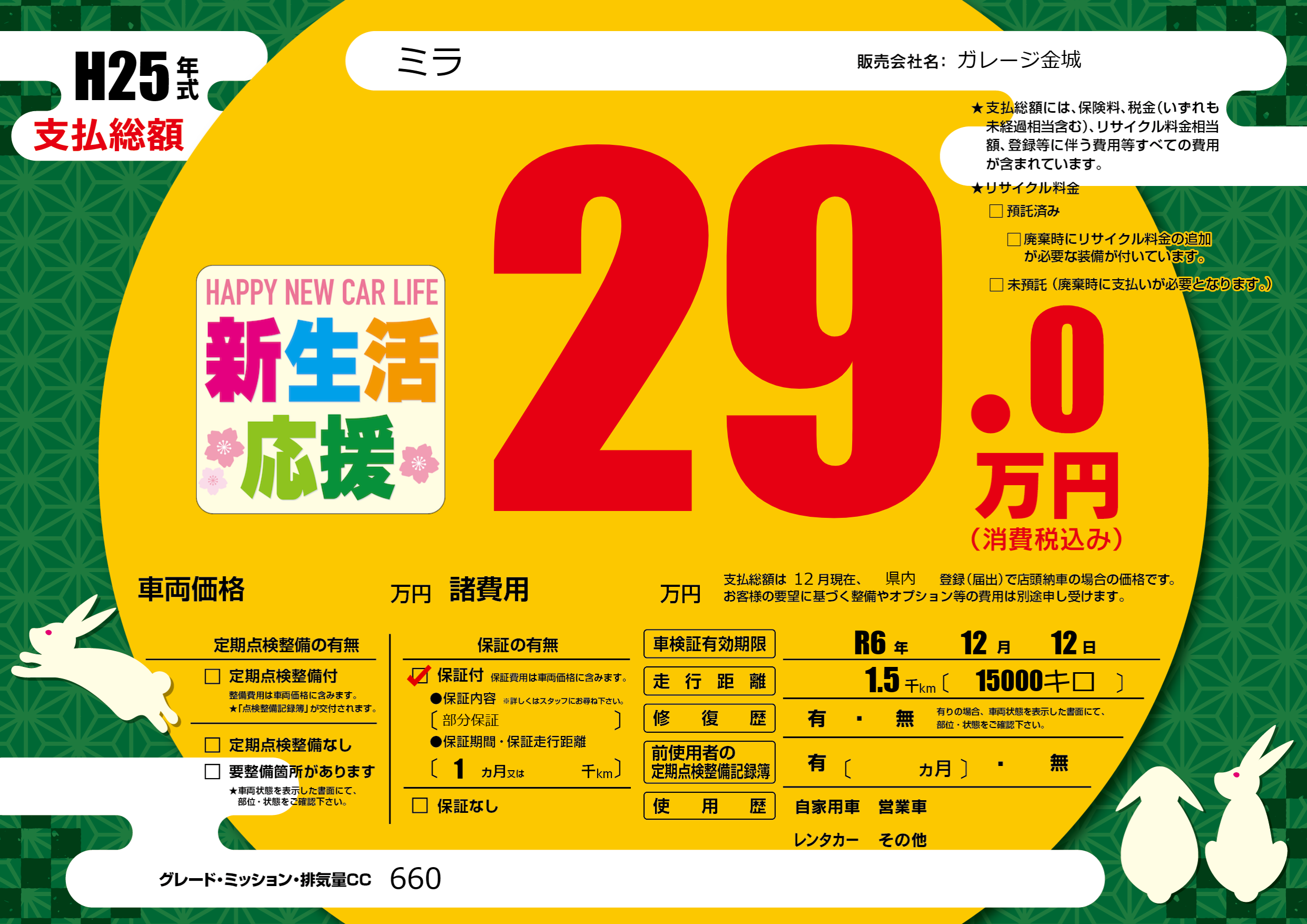 | 車検制限 | R6年 12月 12日 | ||