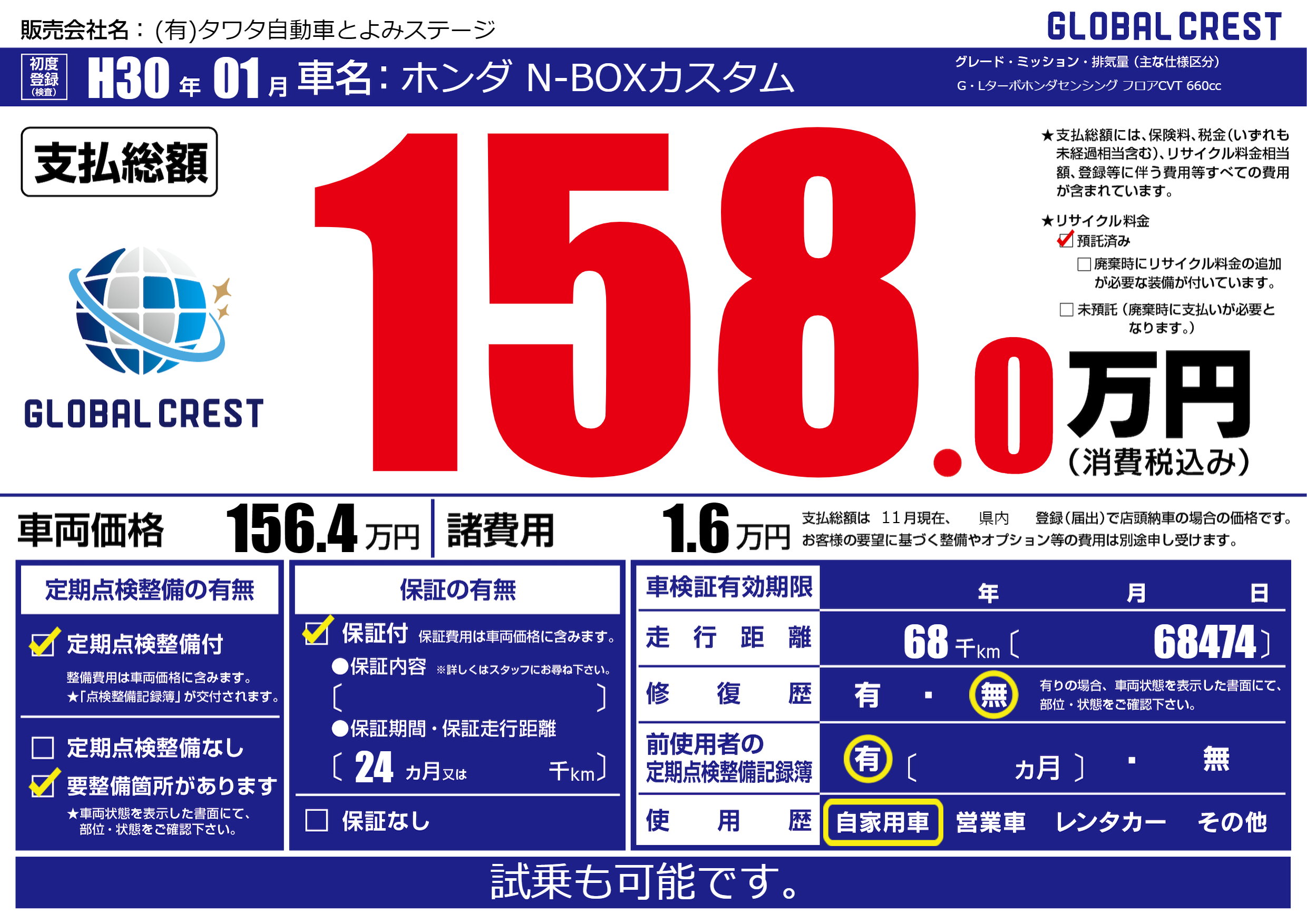 | 走行キロ | 6.8万km | ||