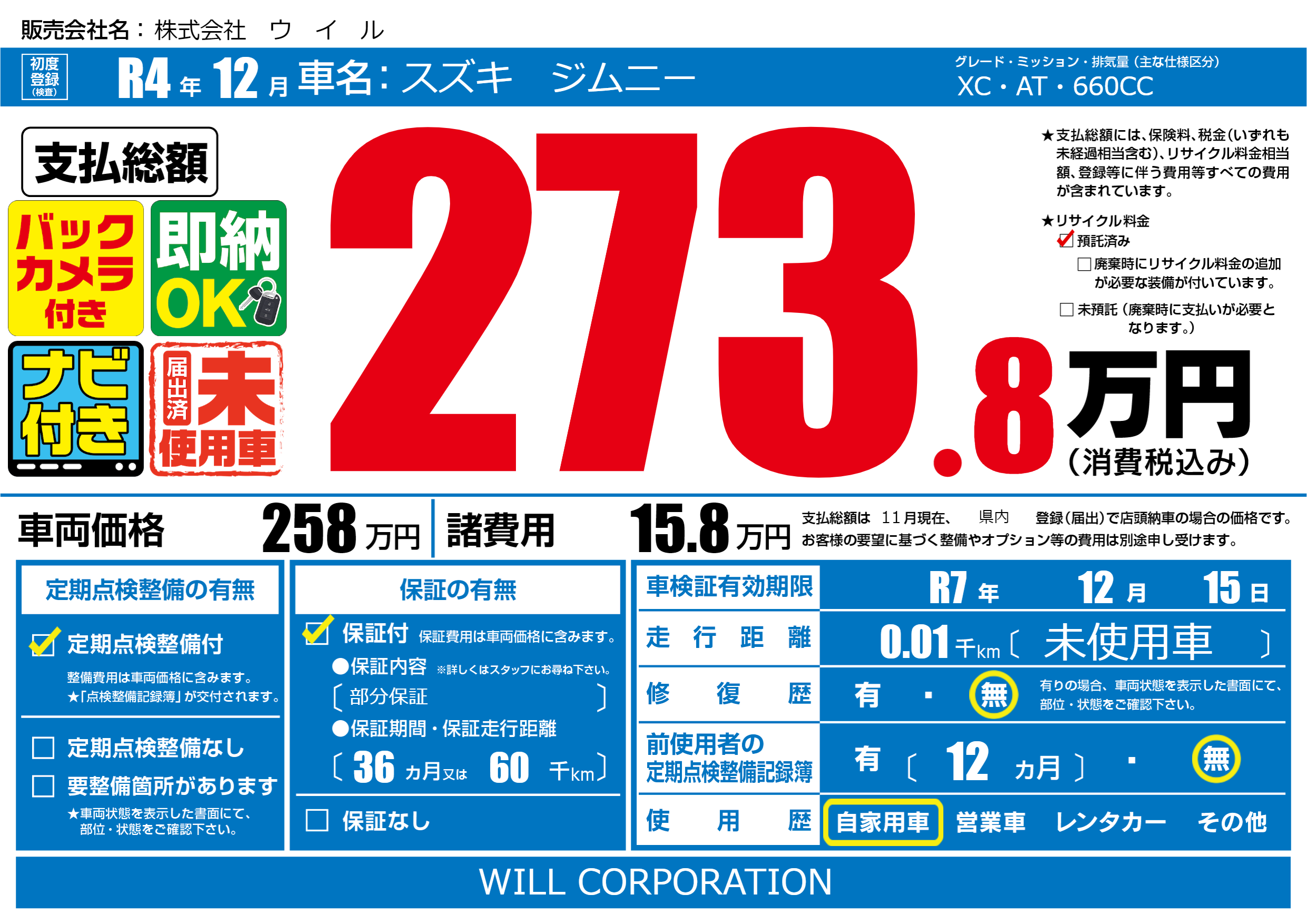 | 走行キロ | - | 初年度登録 | R4年12月 |