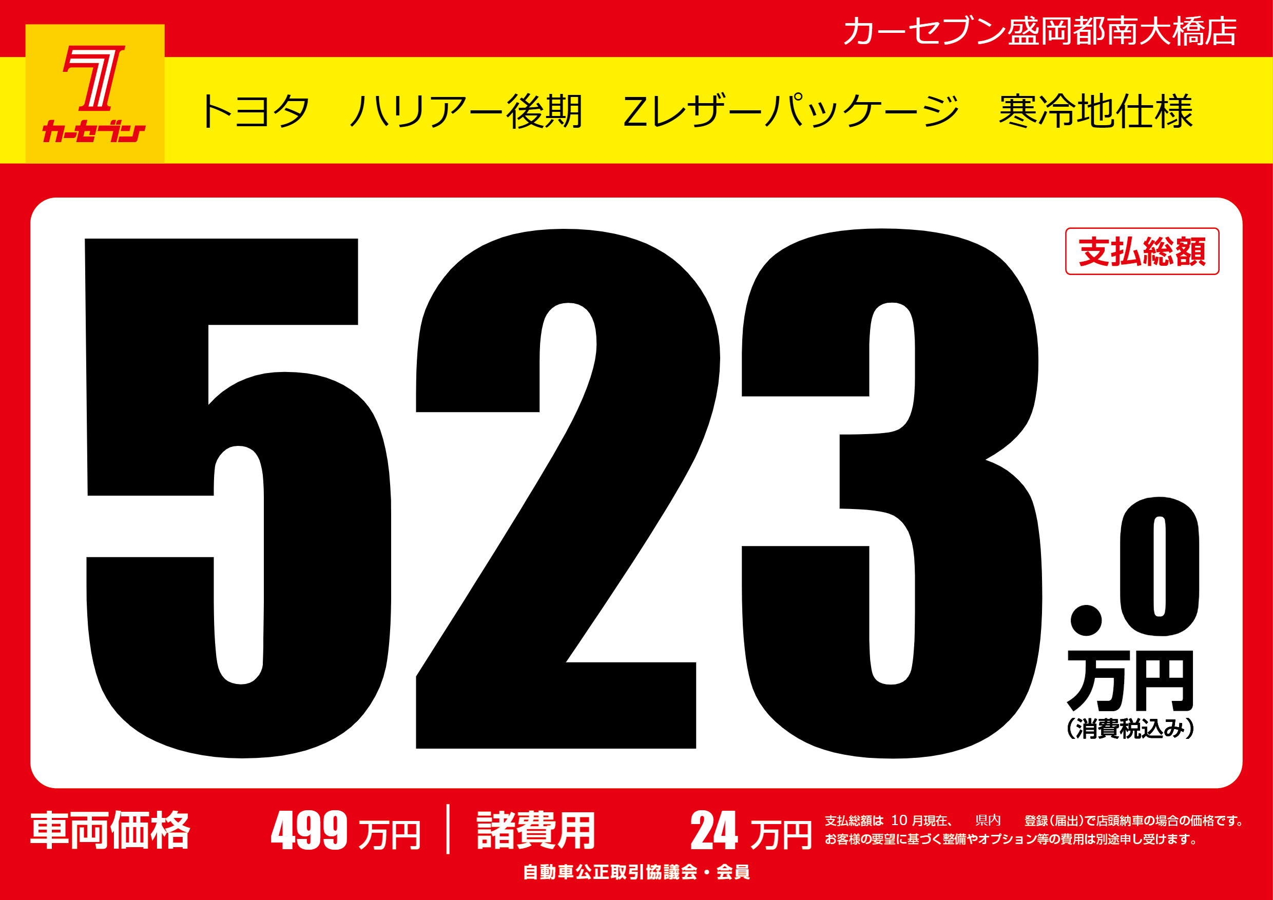 | 車名 | トヨタ ハリアー後期 Zレザーパッケージ 寒冷地仕様 | グレード ミッション 排気量 |