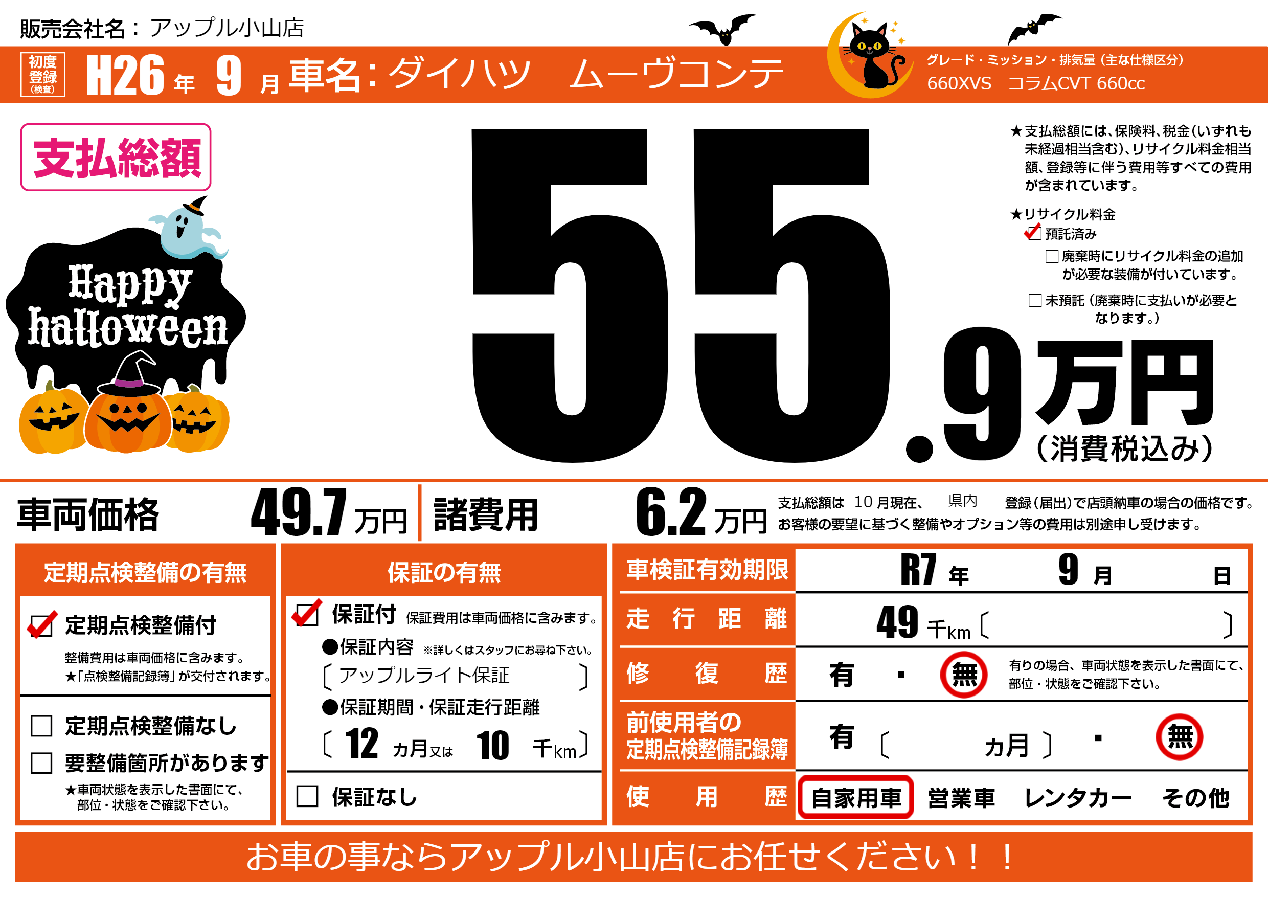 | 走行キロ | 4.9万km | 初年度登録 | H26年9月 |