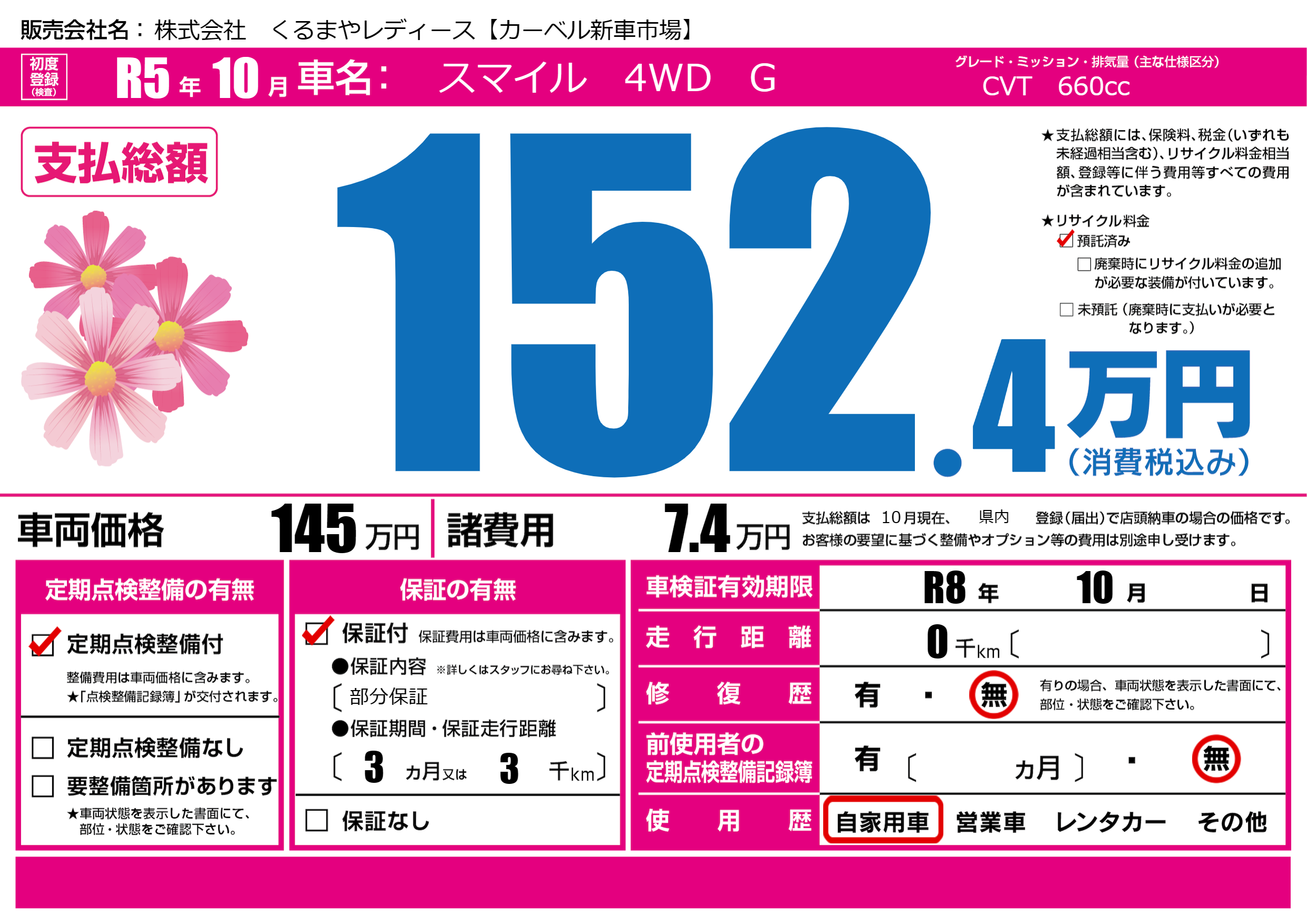 なし | 車検制限 | R8年10月---月 |