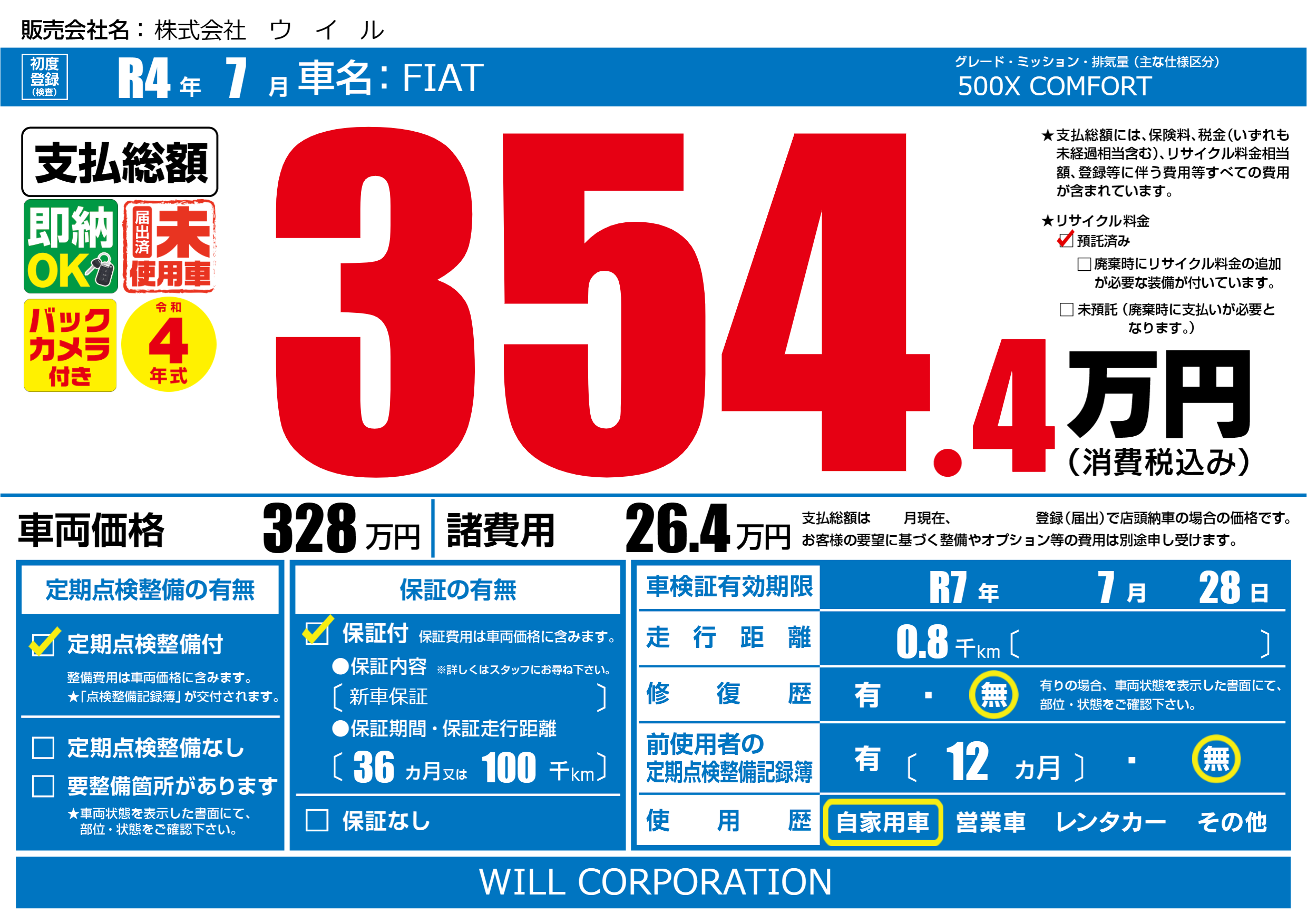 | 車検制限 | R7年 7月 28日 | ||