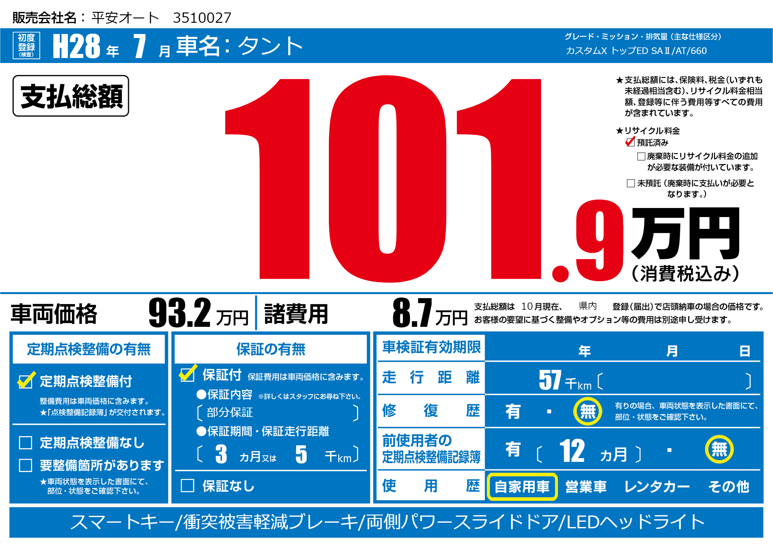 | 定期点検整備 | 定期点検整備あり | ||