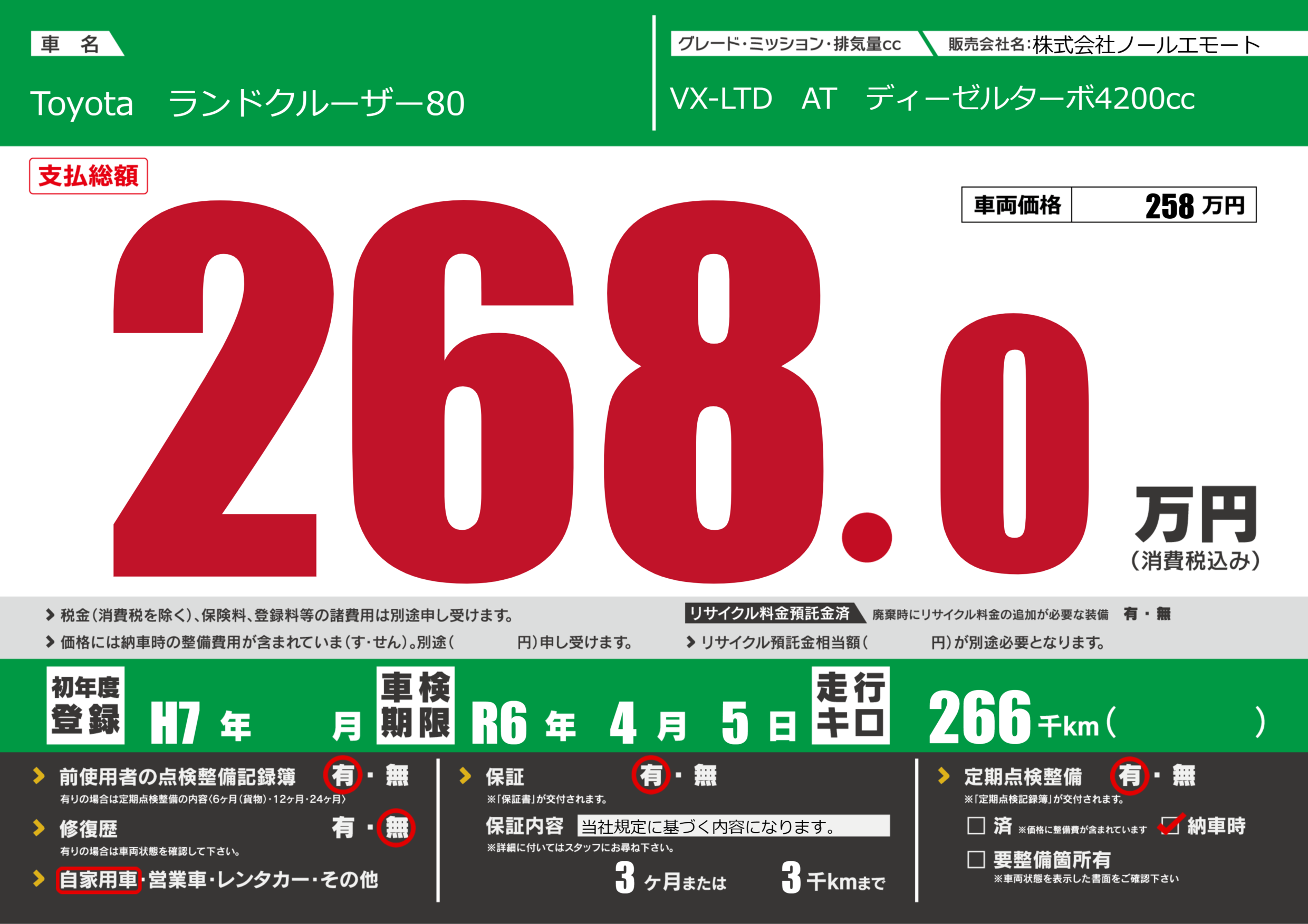 なし | 車検制限 | R6年4月5月 |