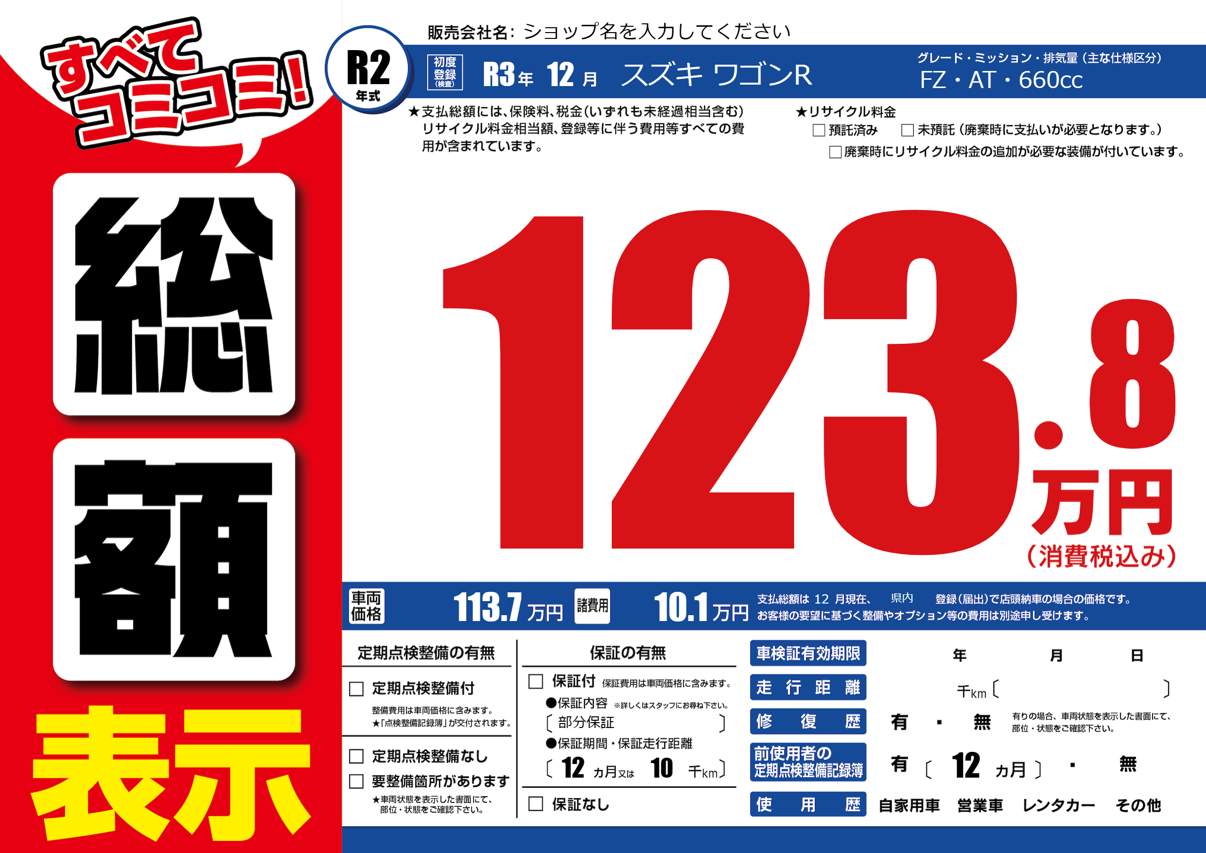 | 車検制限 | - 年 - 月 - 日 | ||