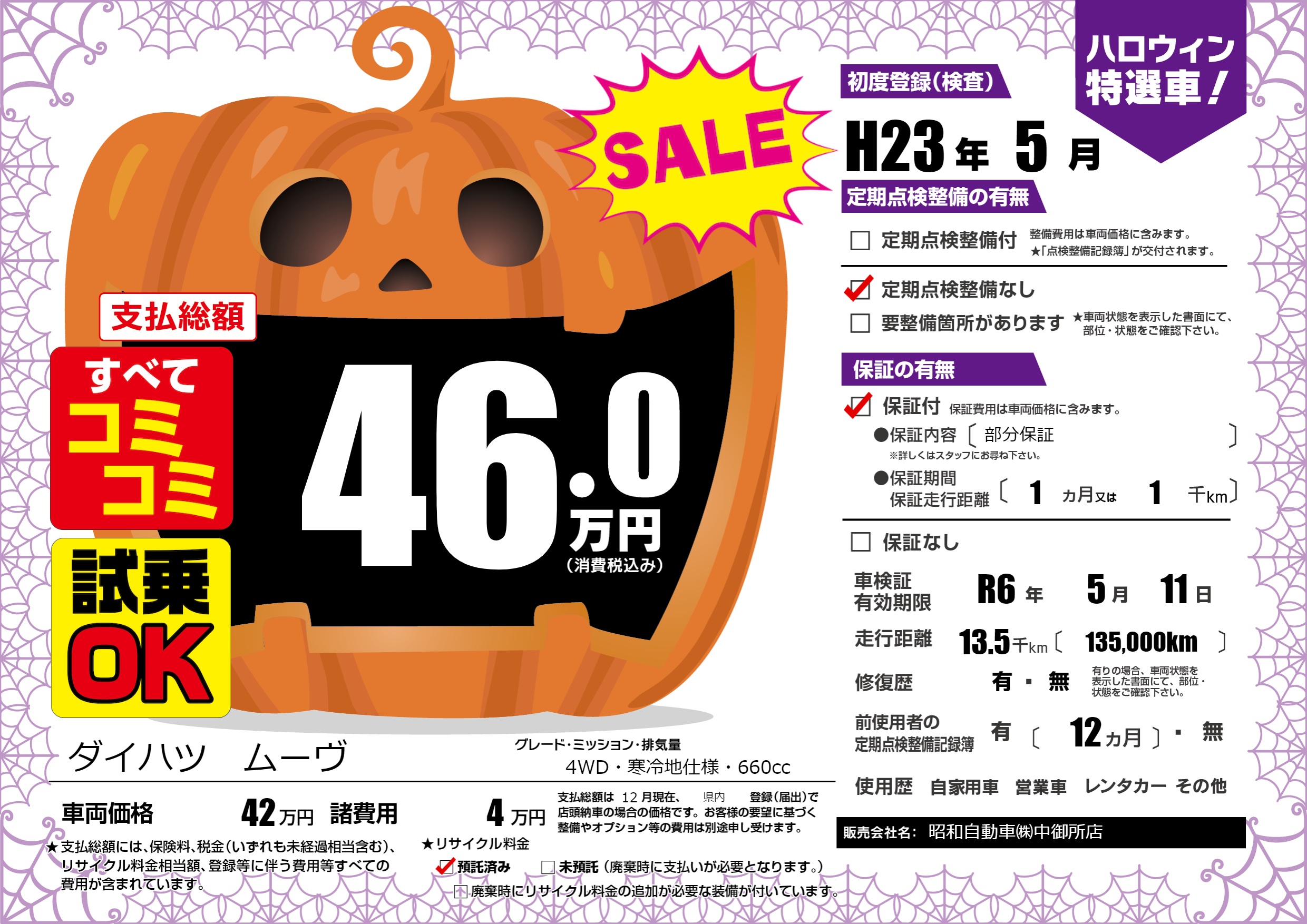 | 走行キロ | 1.3万km | 初年度登録 | H23年5月 |