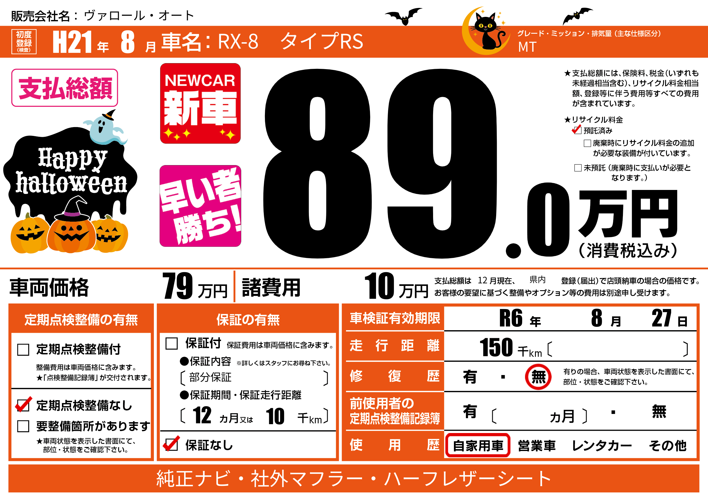 なし | 車検制限 | R6年8月27月 |
