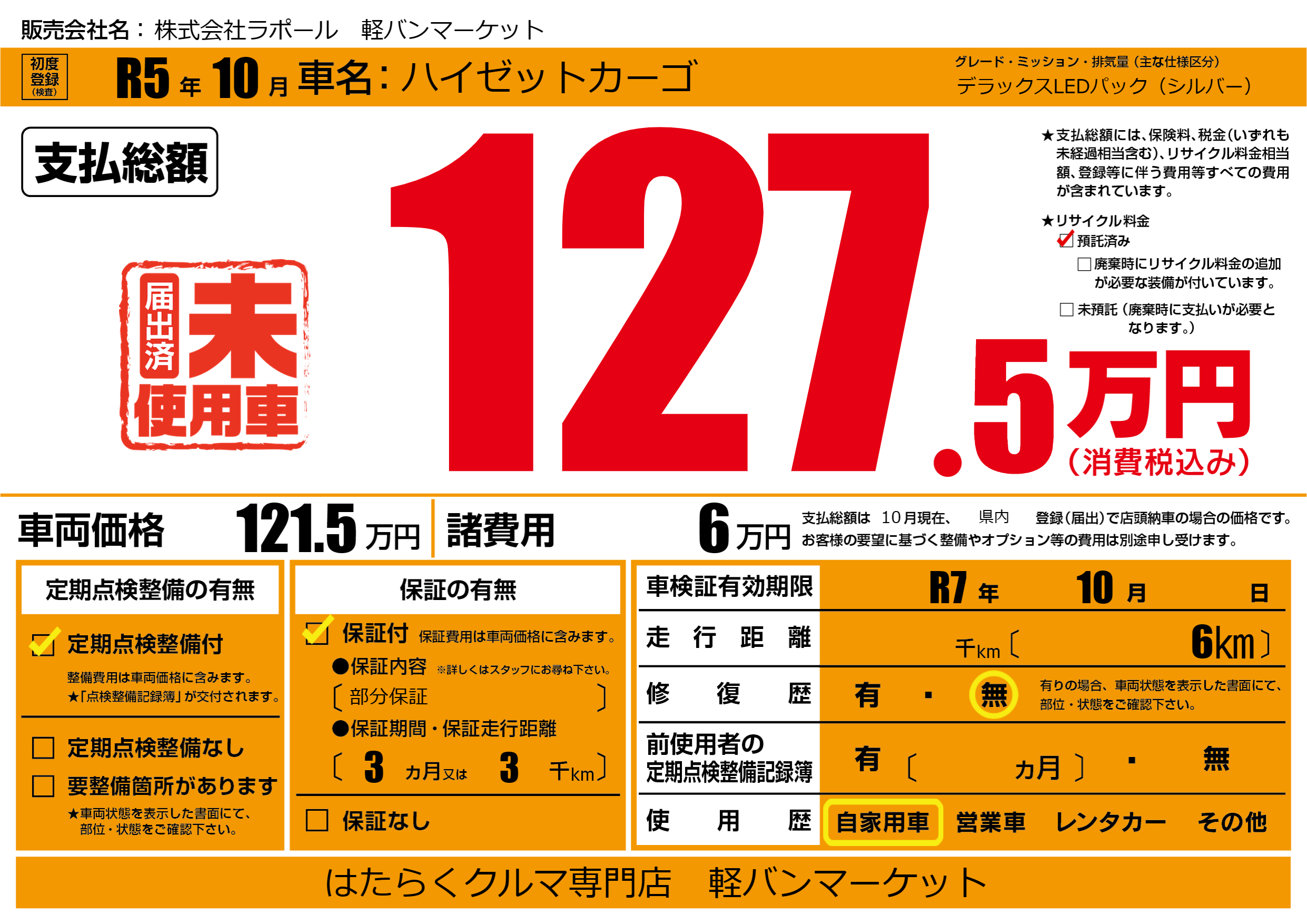 | 初年度登録 | R5年10月 | ||