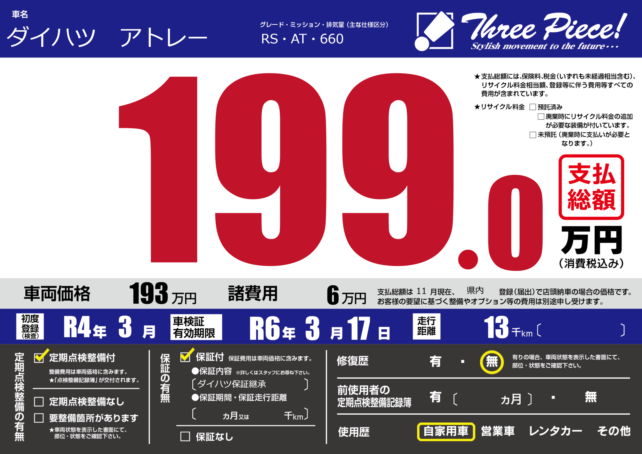 | 定期点検整備 | 定期点検整備あり | ||