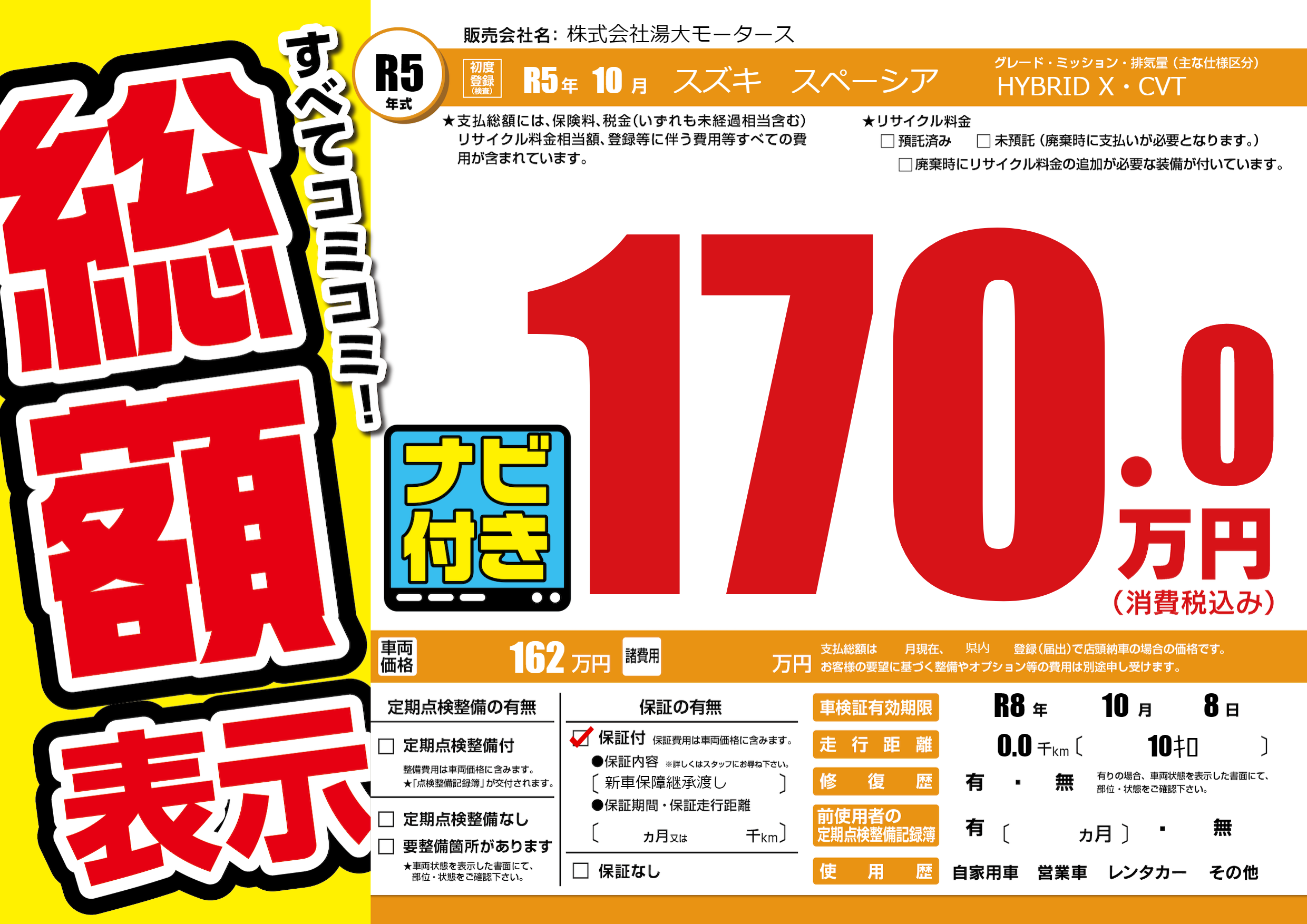| 車名 | スズキ スペーシア | グレード ミッション 排気量 |