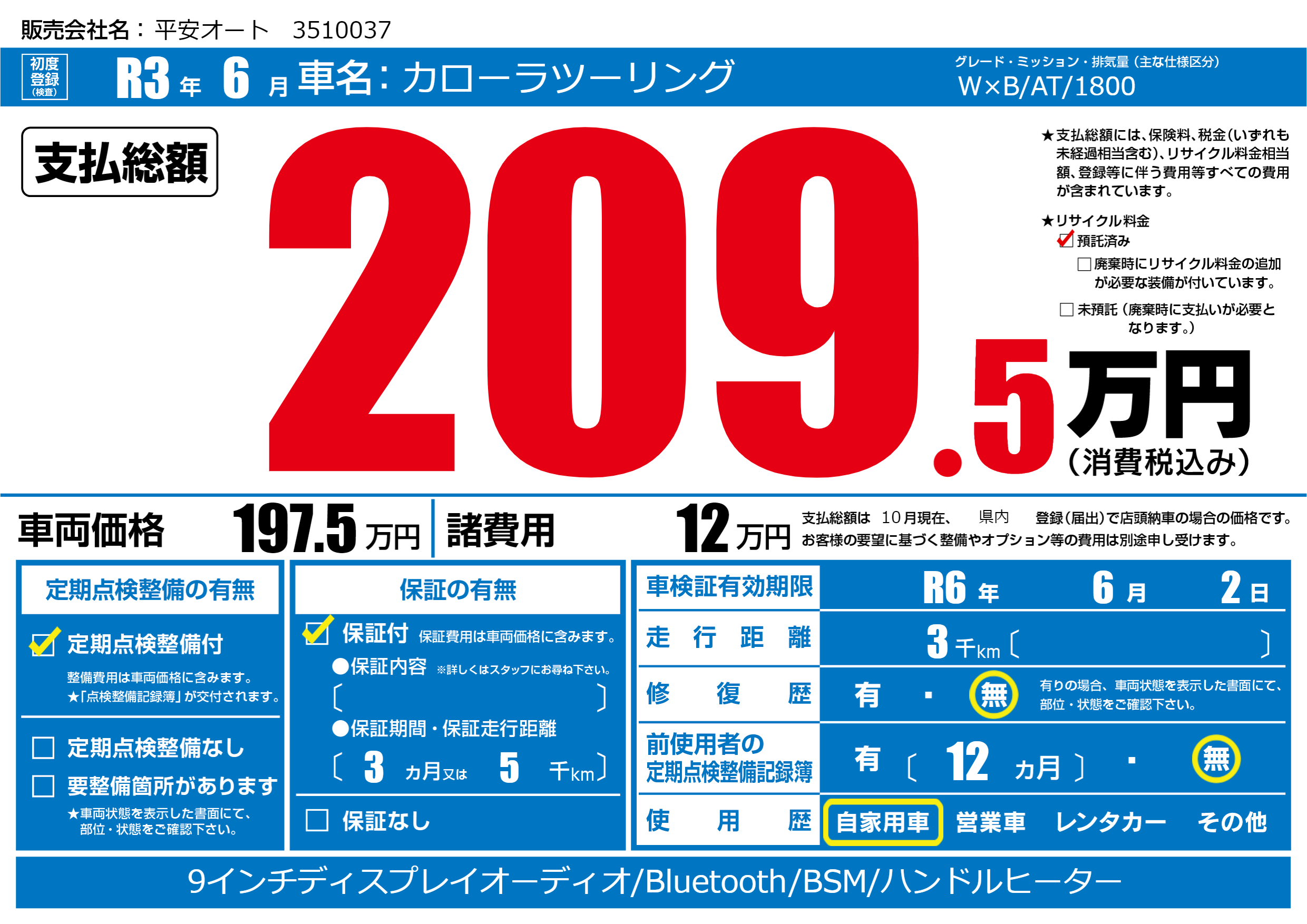 | 定期点検整備 | 定期点検整備あり | ||