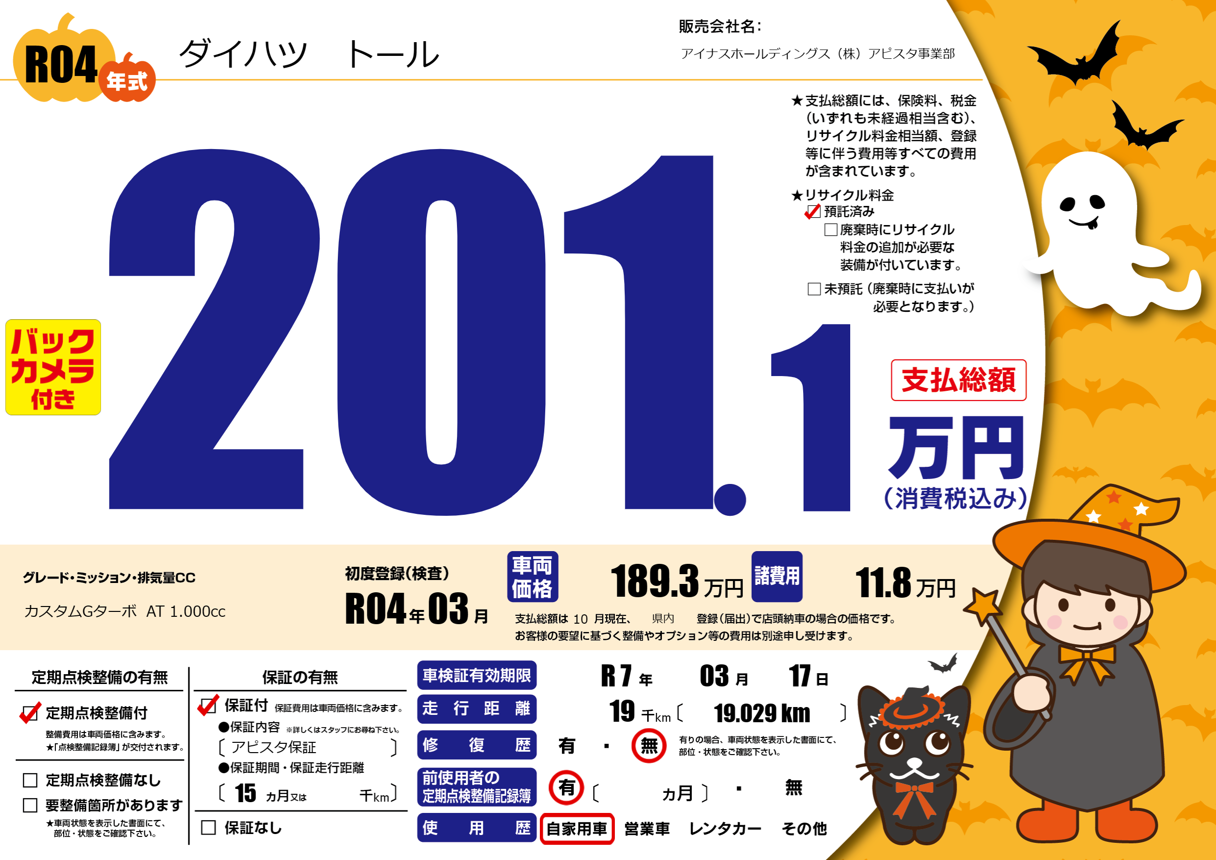 | 定期点検整備 | 定期点検整備あり | ||