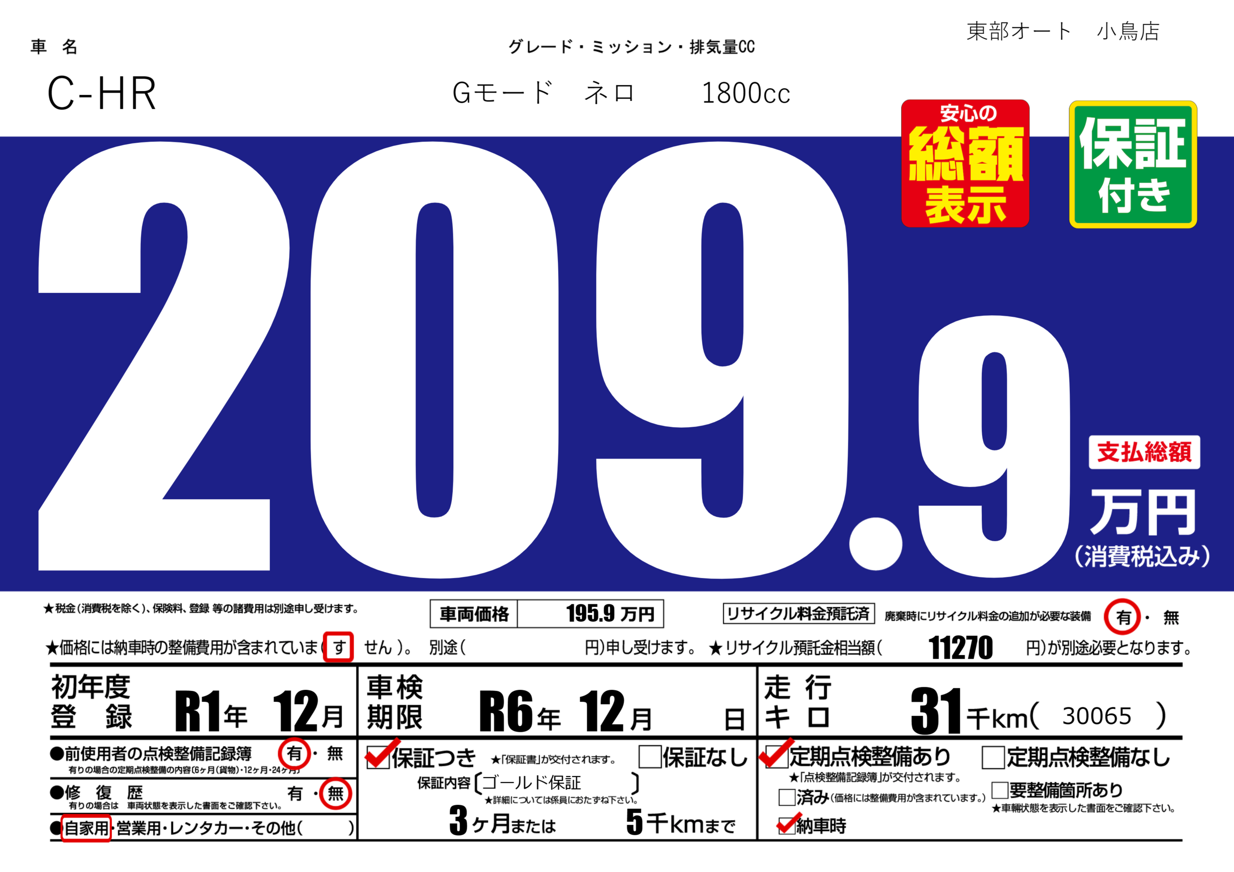 | 車検制限 | R6年 12月 - 日 | ||