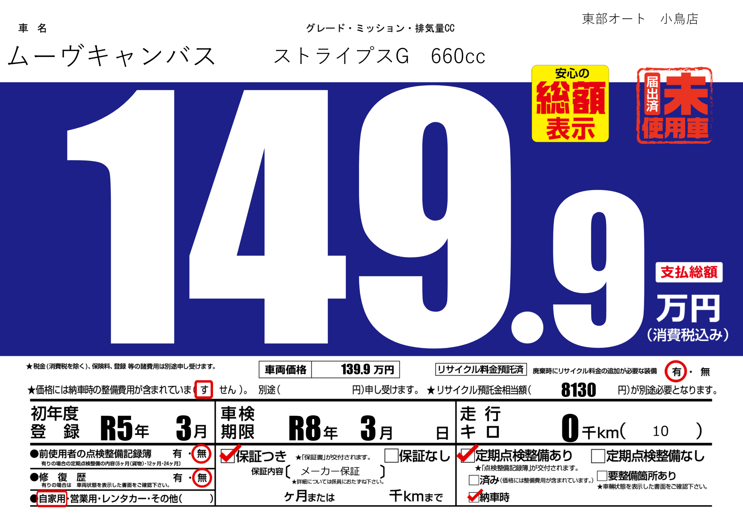 | 車検制限 | R8年 3月 - 日 | ||