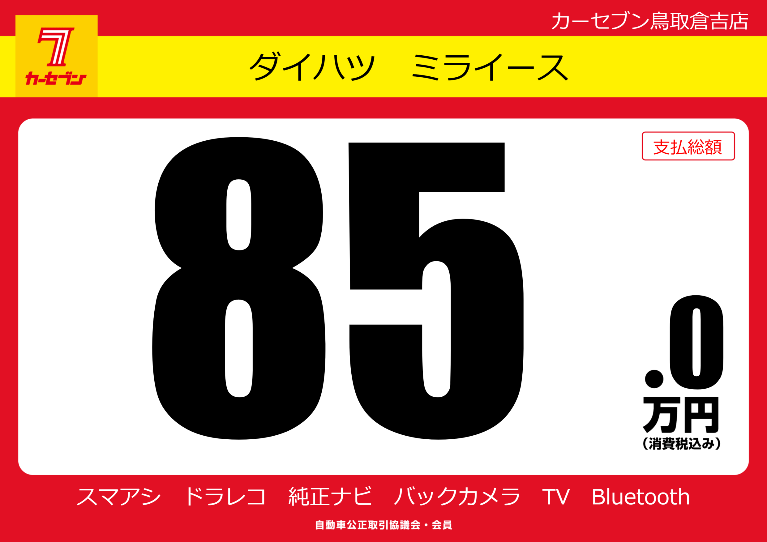 | 車名 | ダイハツ ミライース | グレード ミッション 排気量 |