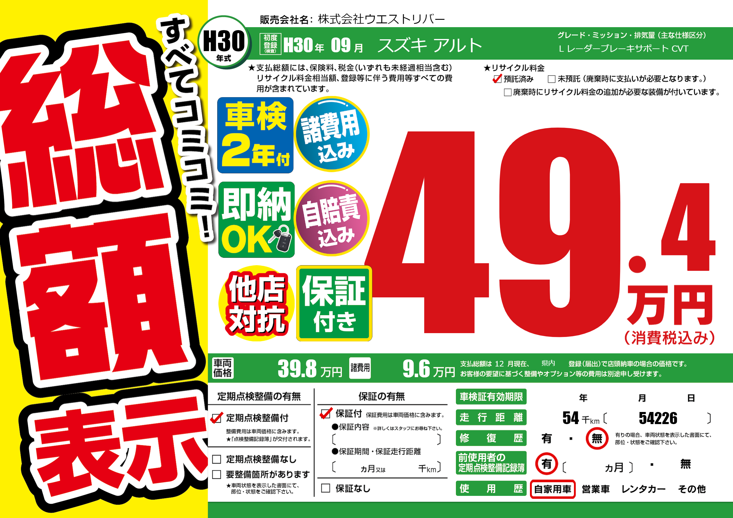 | 車名 | スズキ アルト | グレード ミッション 排気量 |