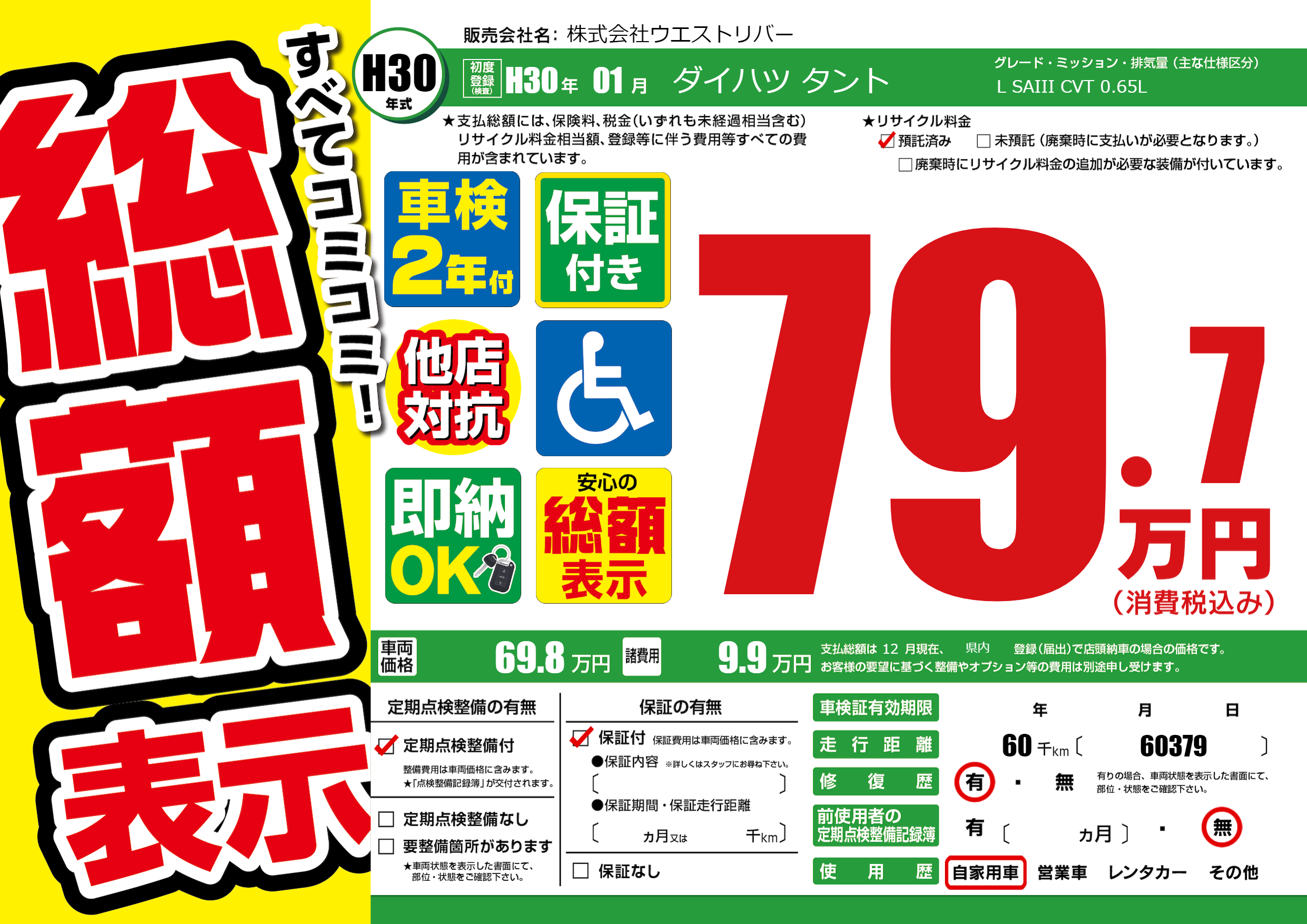 | 定期点検整備 | 定期点検整備あり | ||