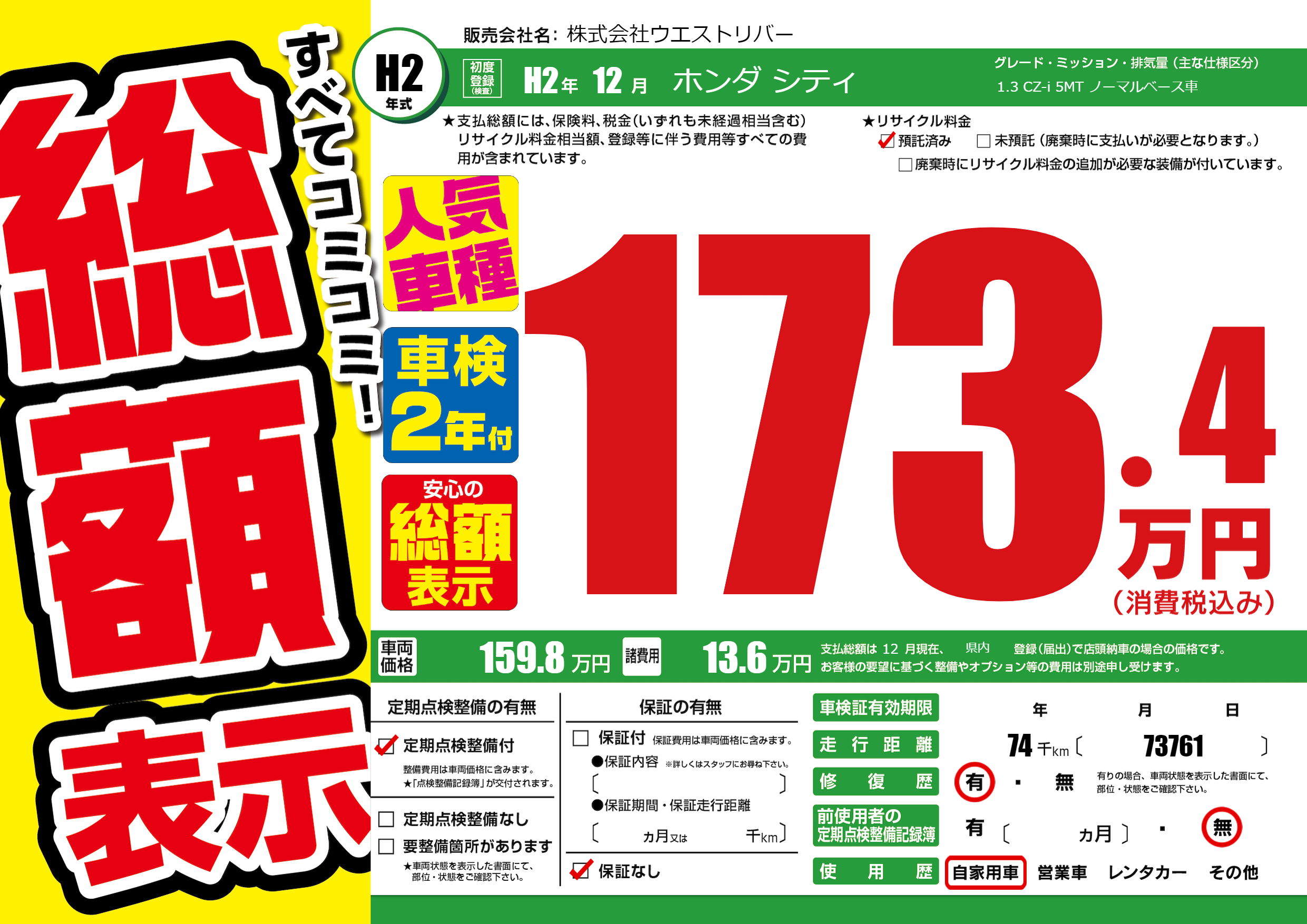 | 車名 | ホンダ シティ | グレード ミッション 排気量 |