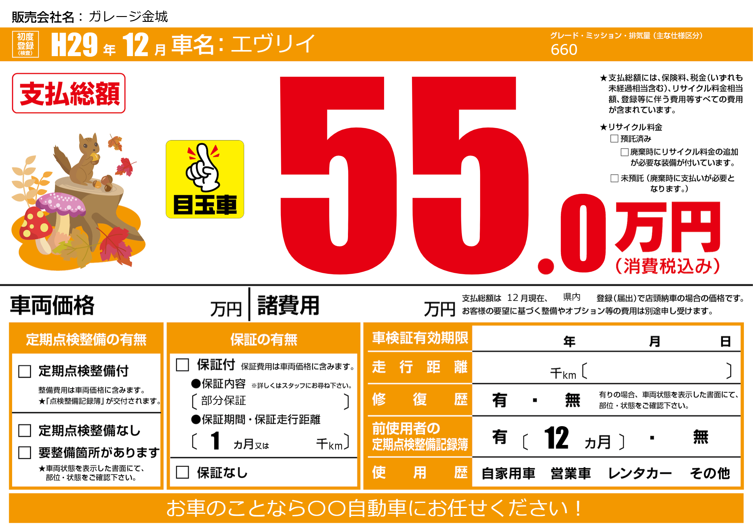 | 車名 | エヴリイ | グレード ミッション 排気量 |