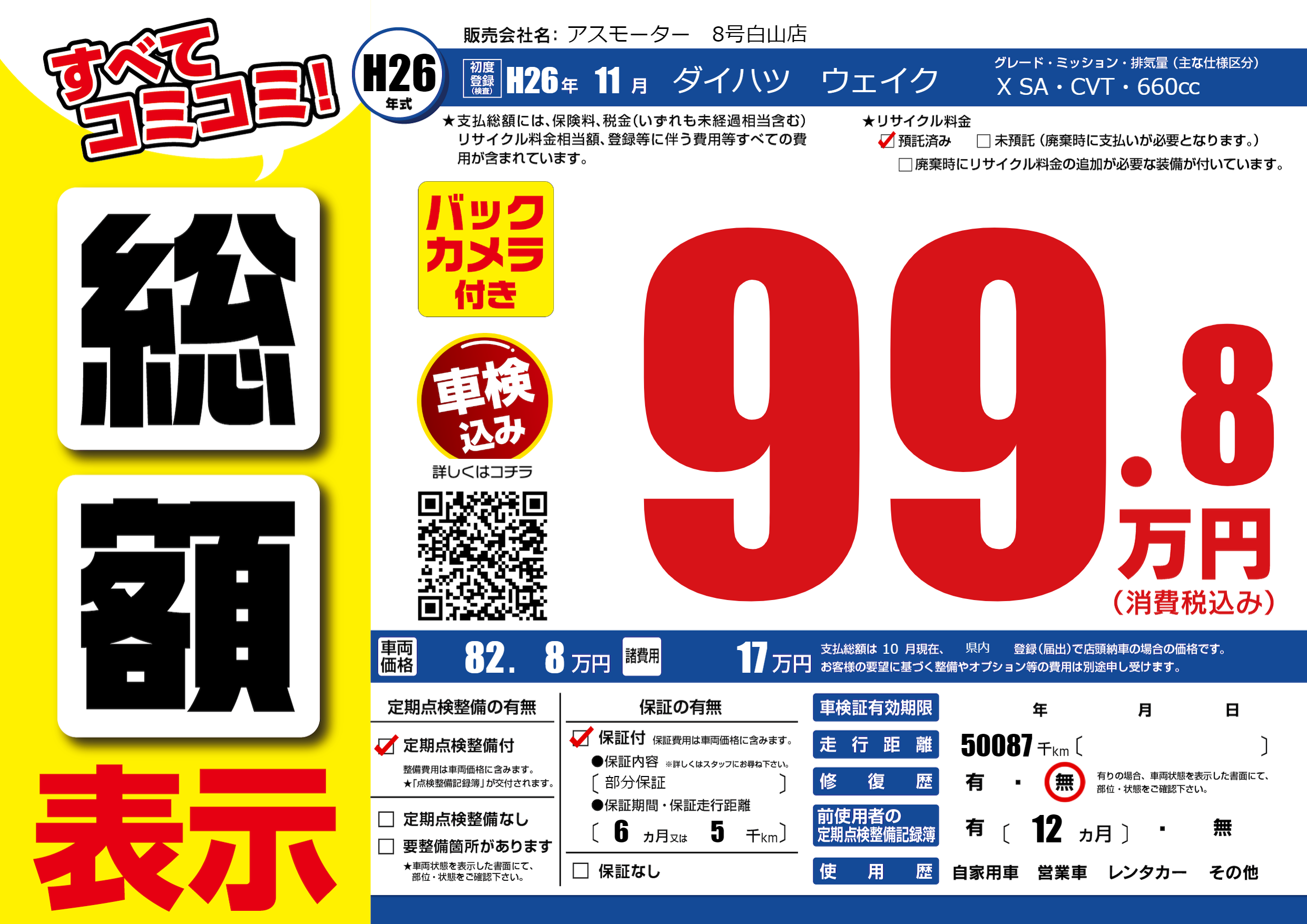 保証付き 保証内容(部分保証) 6ヶ月または(5)千kmまで |