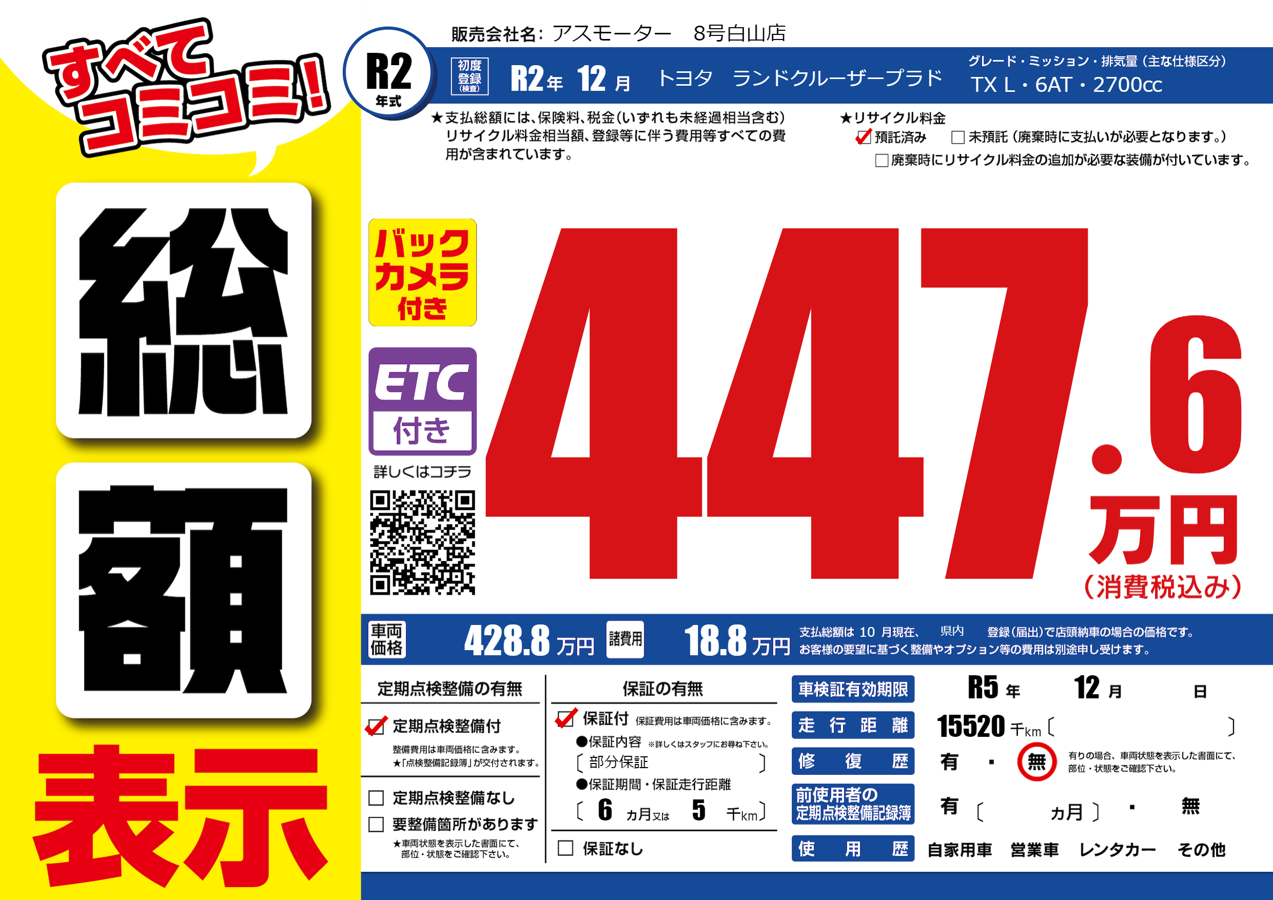 なし | 車検制限 | R5年12月---月 |