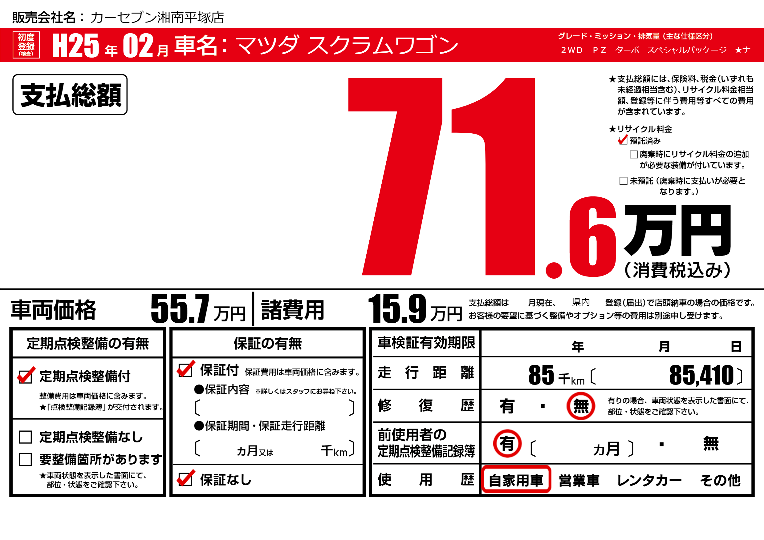 | 定期点検整備 | 定期点検整備あり | ||