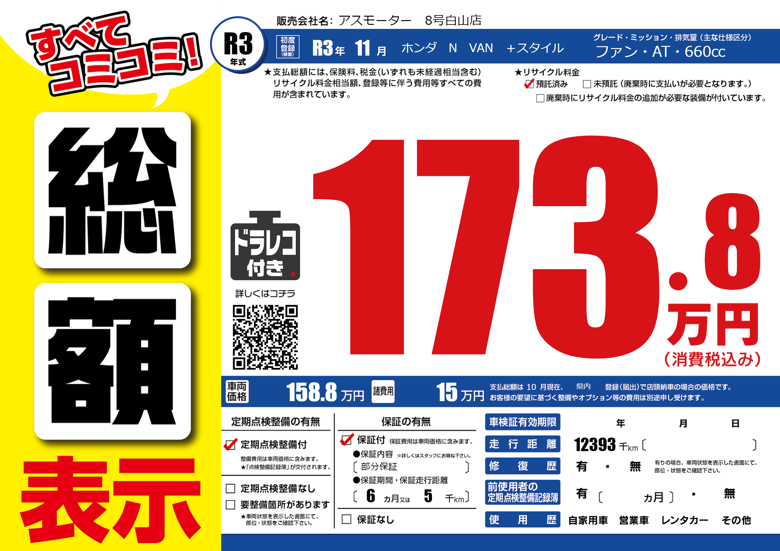 | 車名 | ホンダ N VAN +スタイル | グレード ミッション 排気量 |