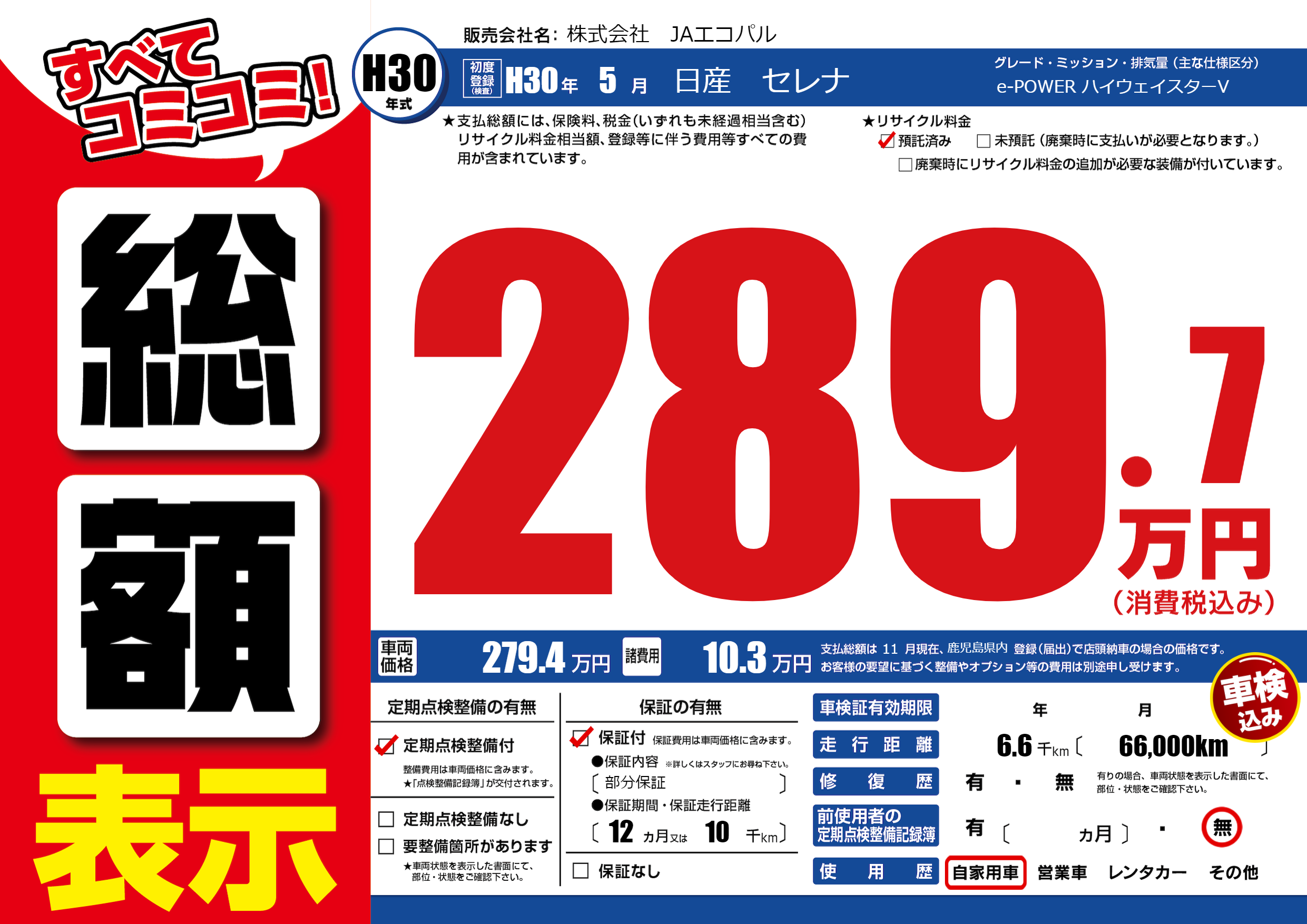 | 定期点検整備 | 定期点検整備あり | ||