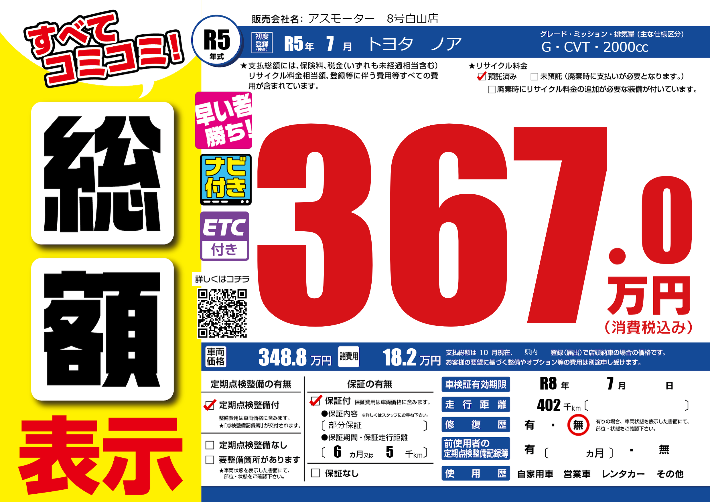 | 車検制限 | R8年 7月 - 日 | ||