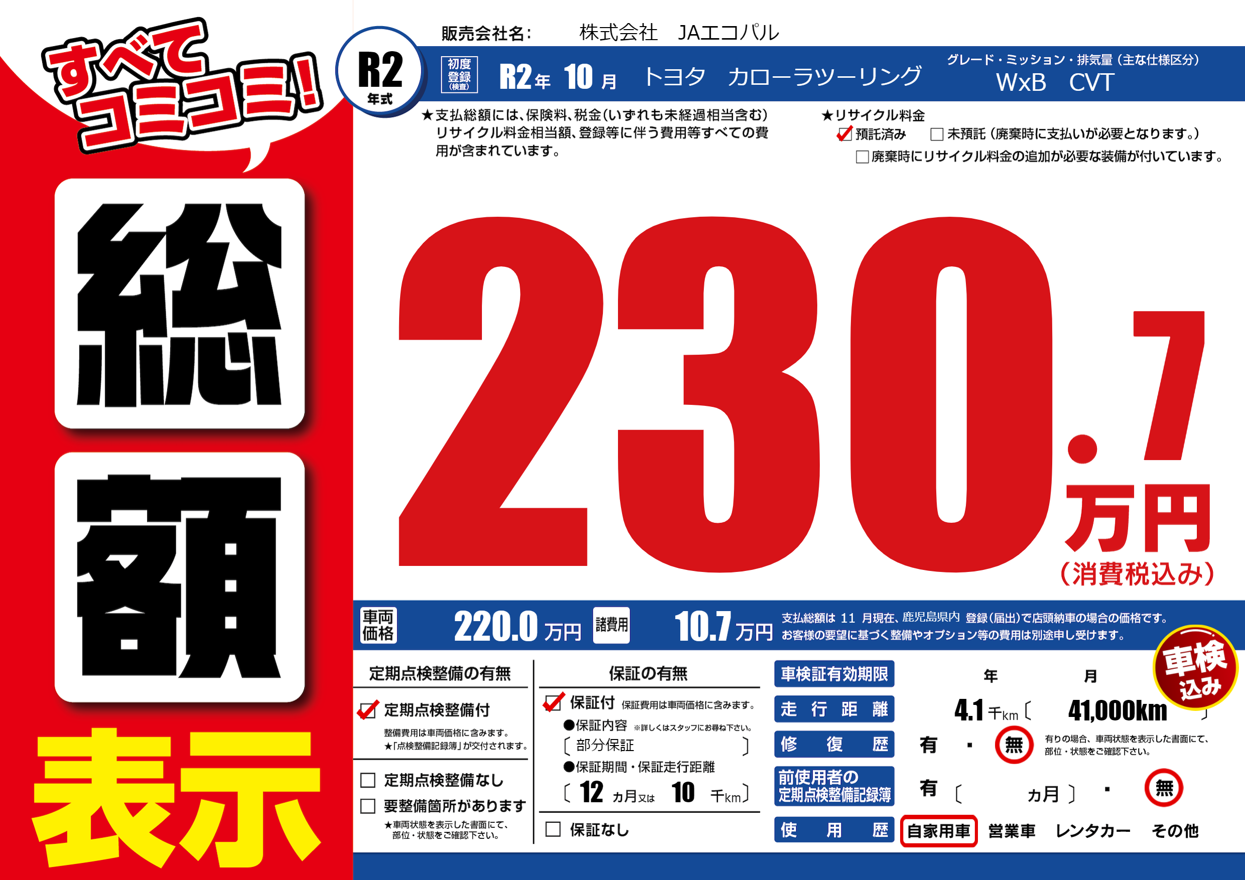 | 定期点検整備 | 定期点検整備あり | ||