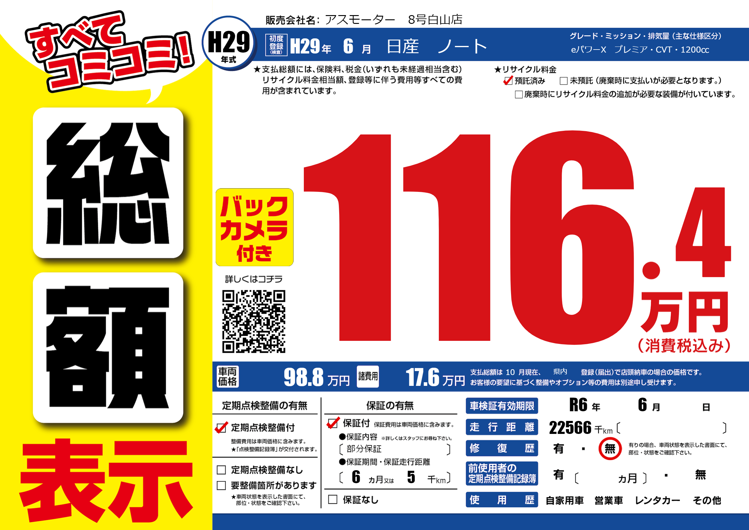 保証付き 保証内容(部分保証) 6ヶ月または(5)千kmまで |
