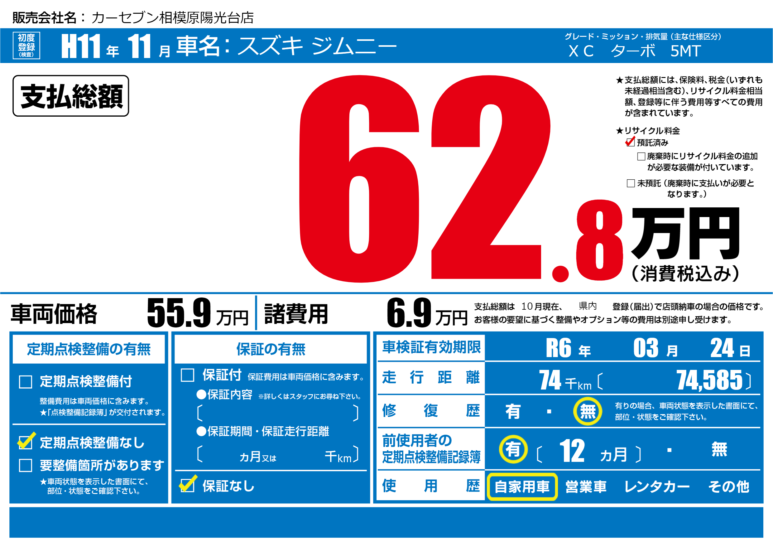 | 車検制限 | R6年 03月 24日 | ||