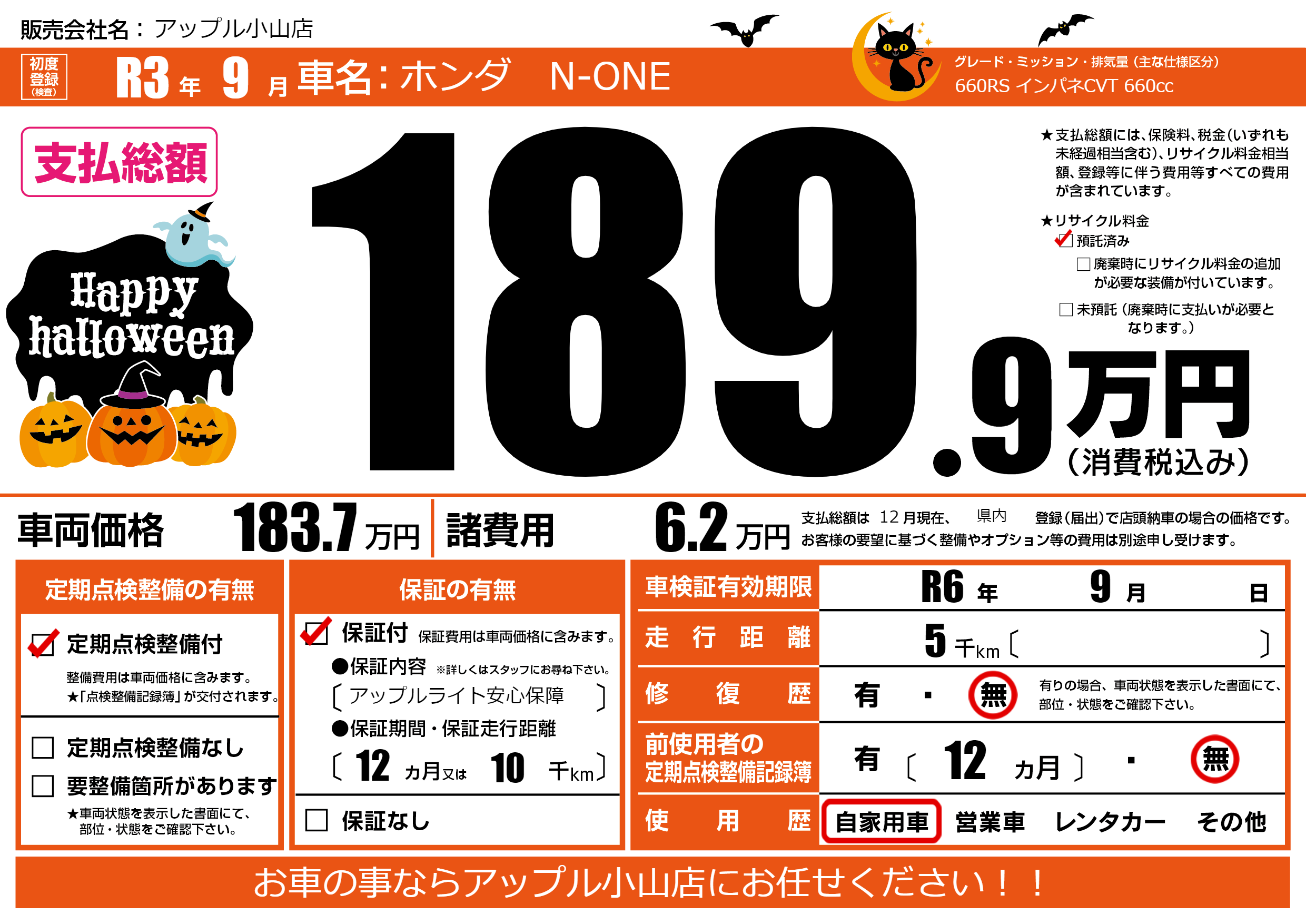 | 走行キロ | 0.5万km | 初年度登録 | R3年9月 |