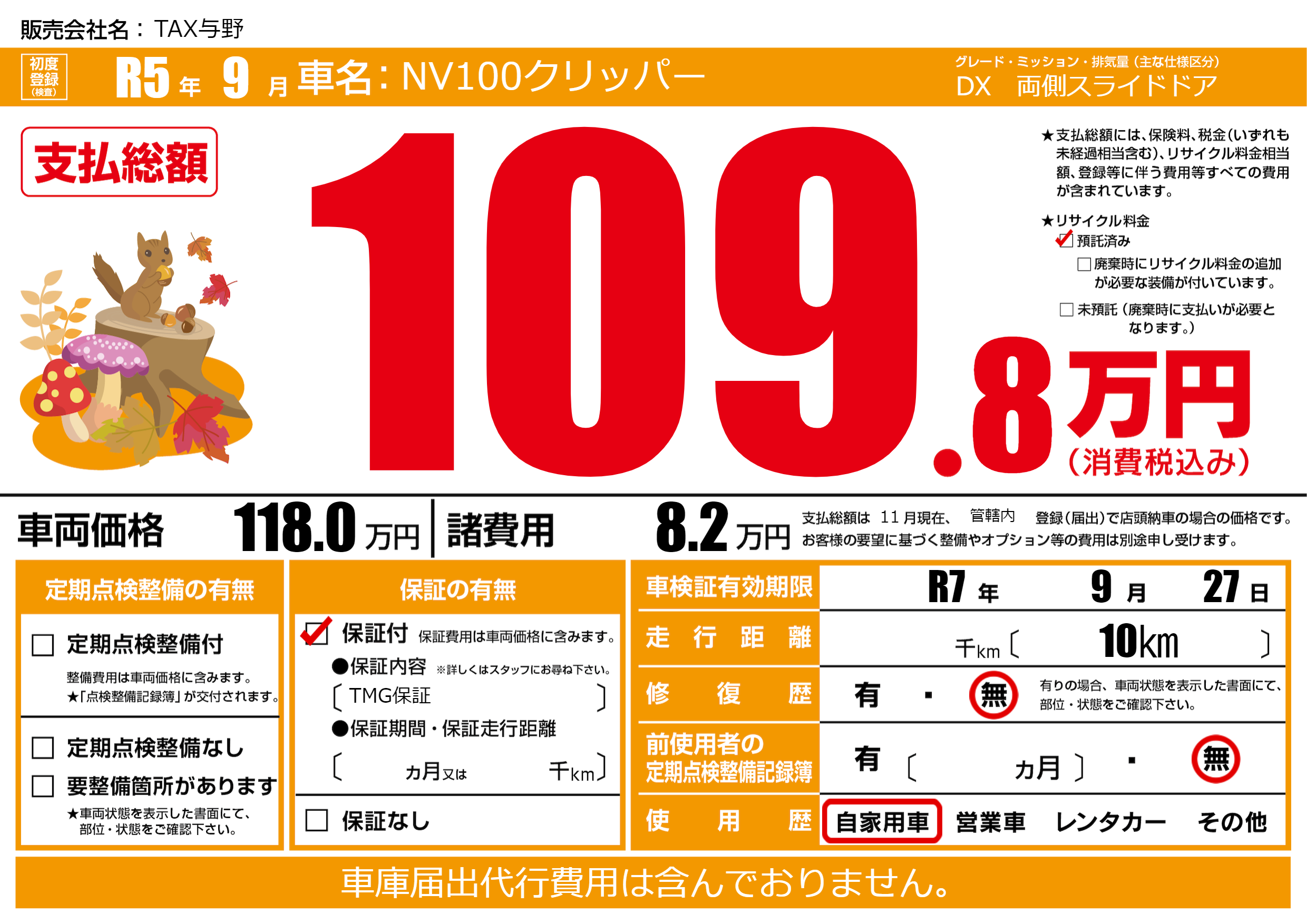 保証付き 保証内容(TMG保証) ---ヶ月または()千kmまで |
