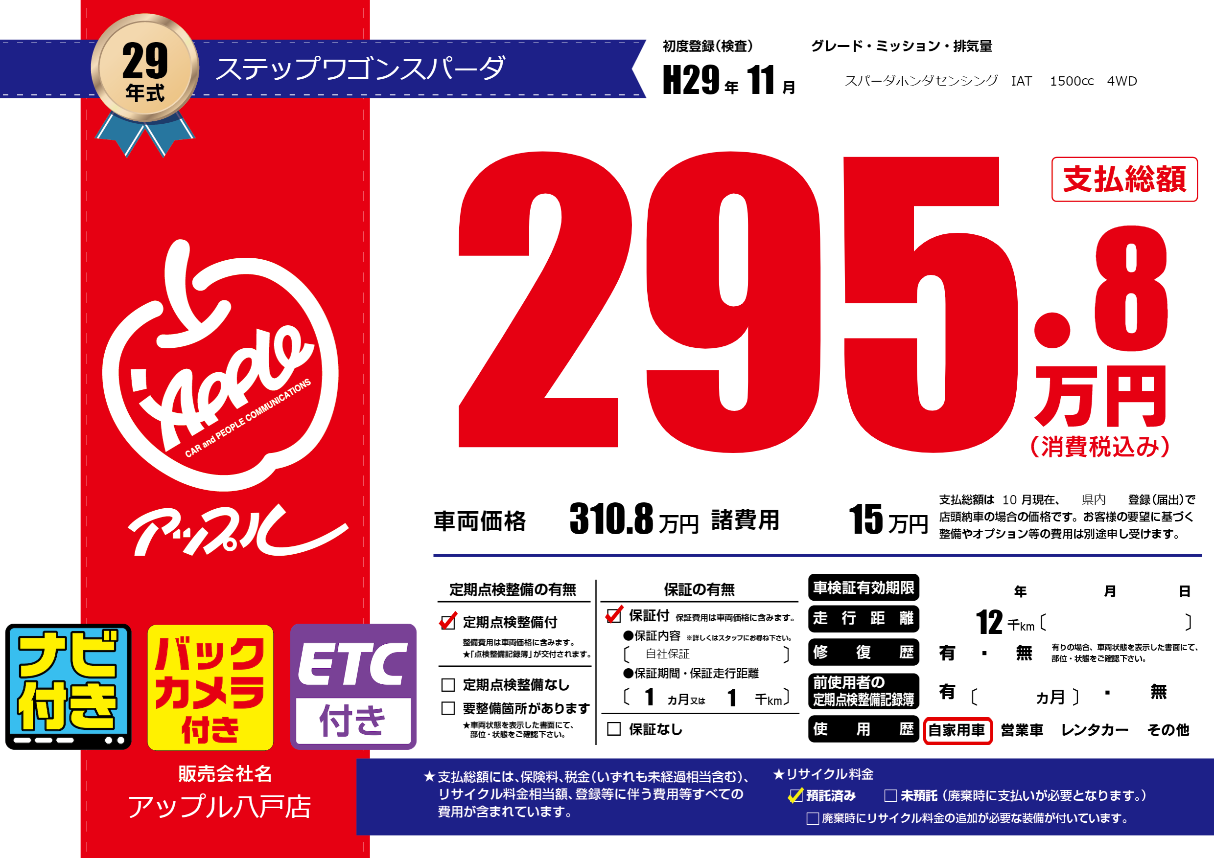 | 走行キロ | 1.2万km | 初年度登録 | H29年11月 |