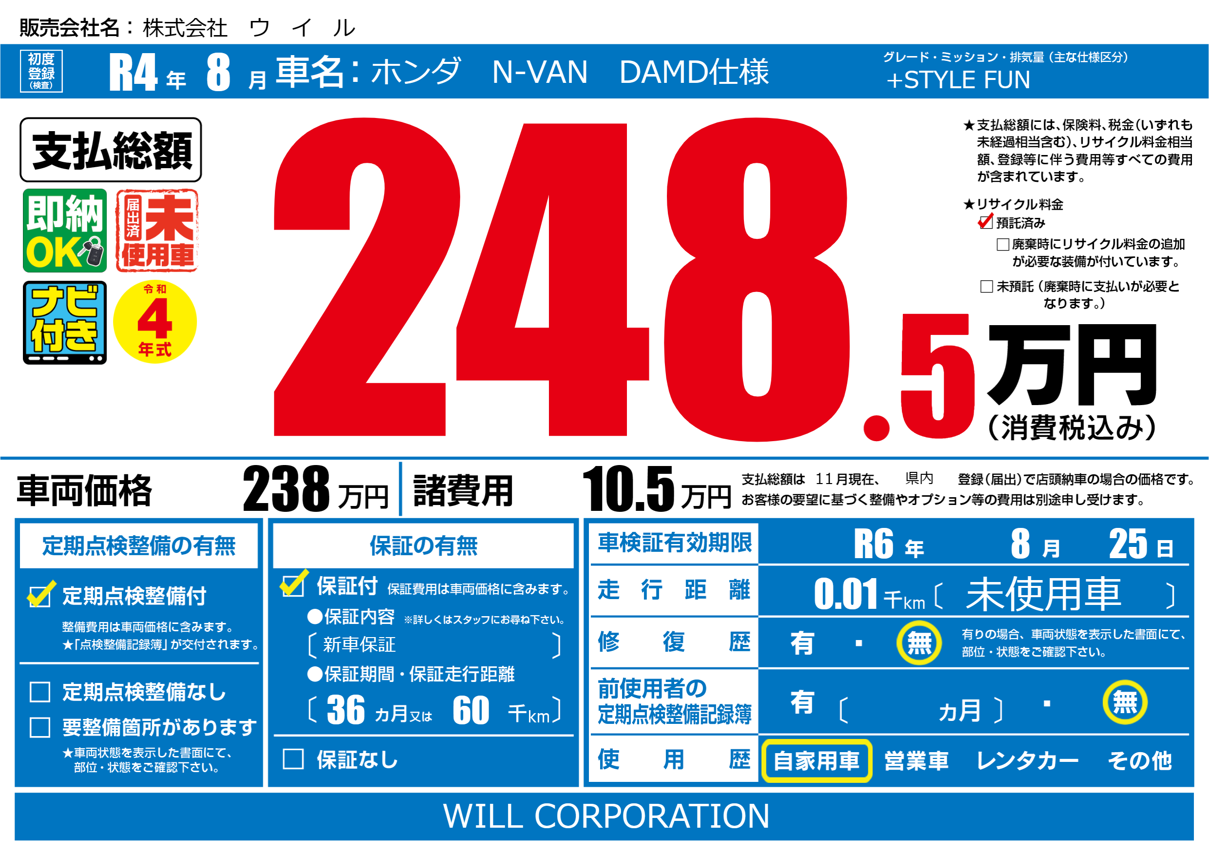 | 車検制限 | R6年 8月 25日 | ||