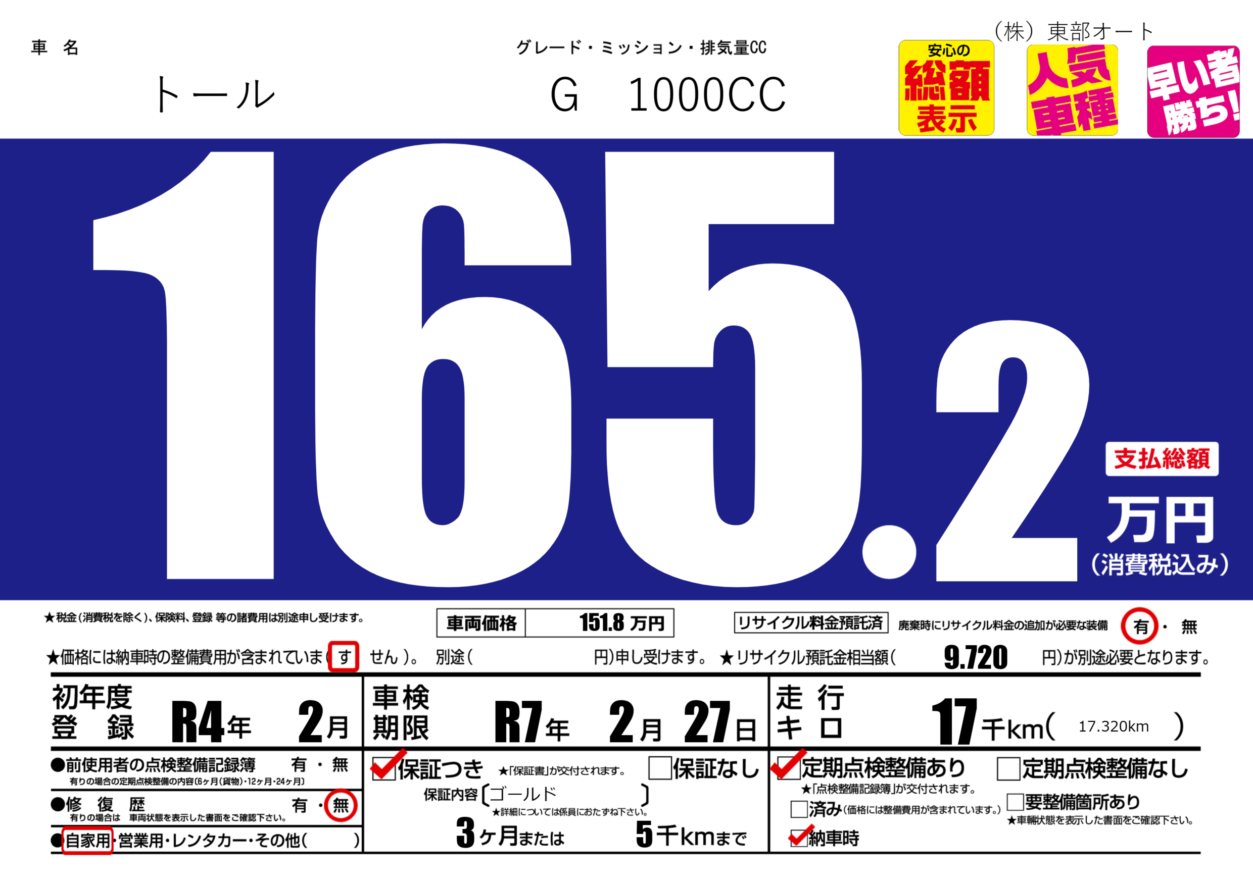 保証付き 保証内容(ゴールド) 3ヶ月または(5)千kmまで |
