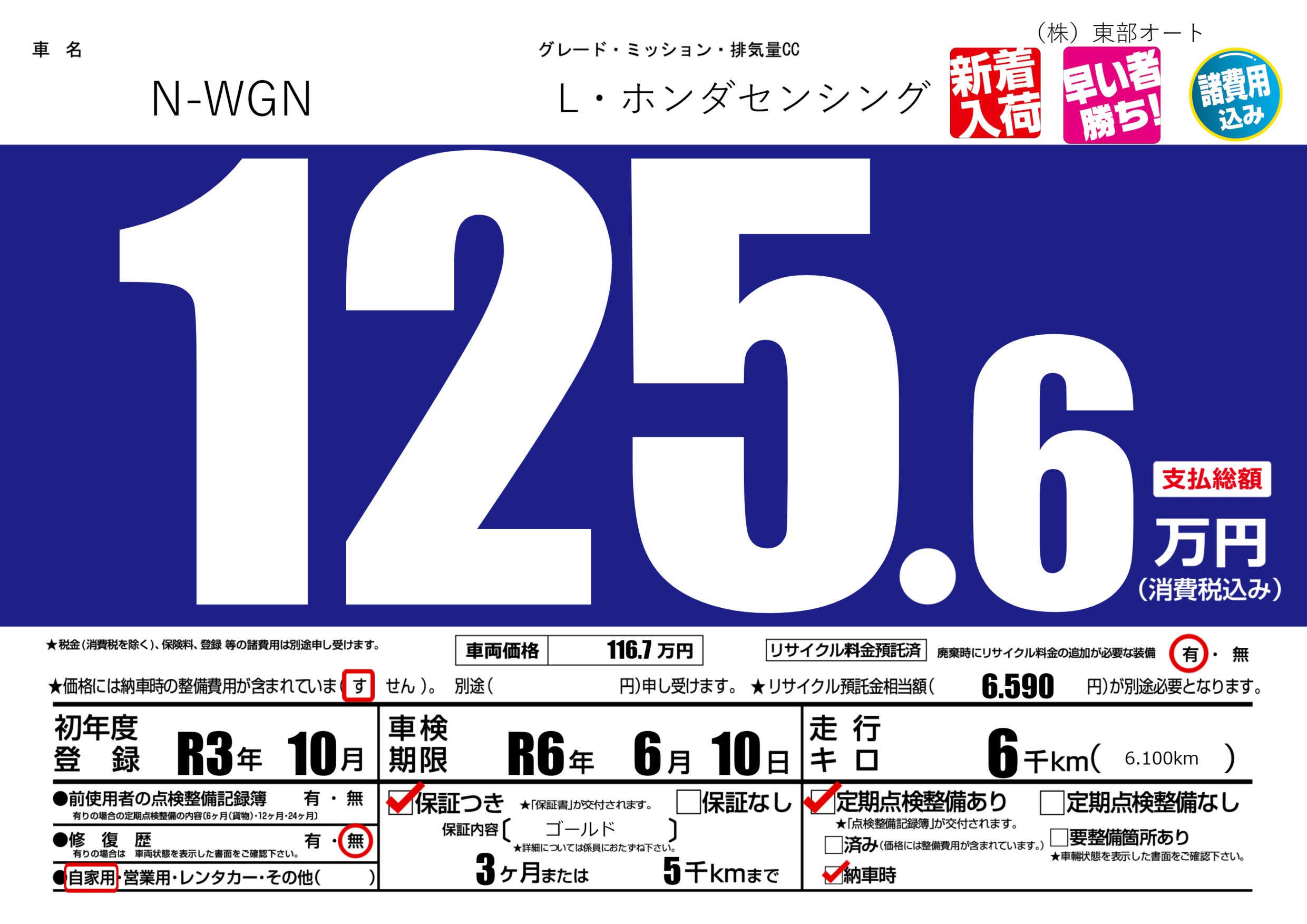| 車名 | N-WGN | グレード ミッション 排気量 |