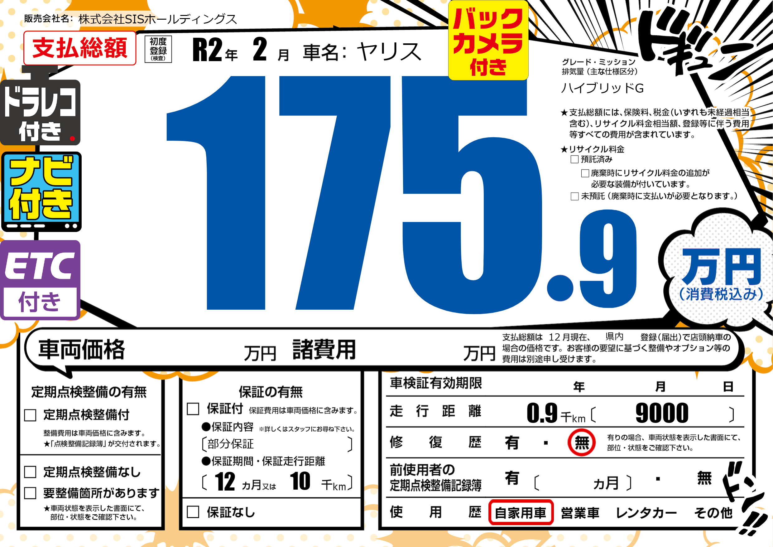 | 走行キロ | - | 初年度登録 | R2年2月 |