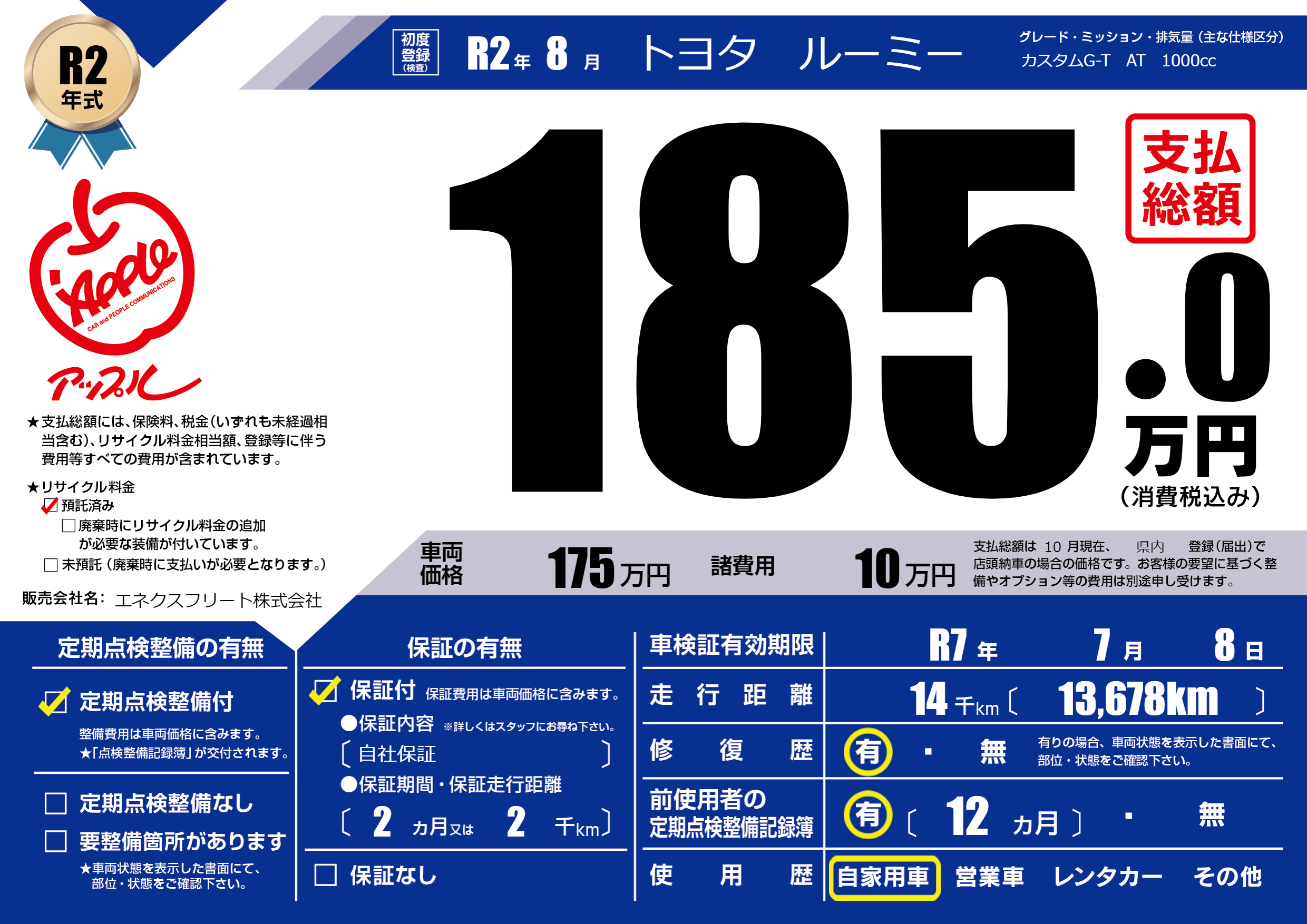 | 車検制限 | R7年 7月 8日 | ||