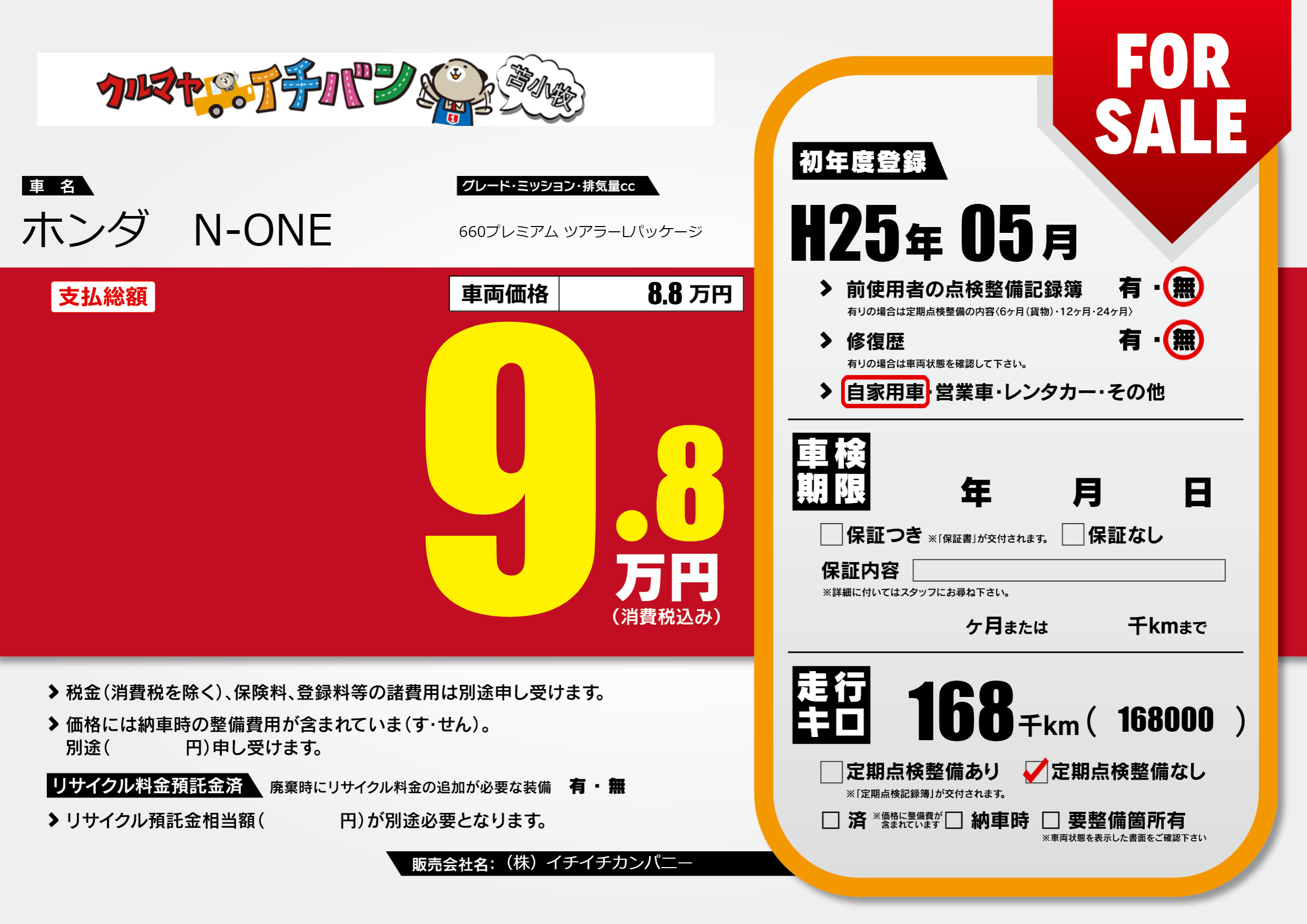 | 定期点検整備 | 定期点検整備なし | ||