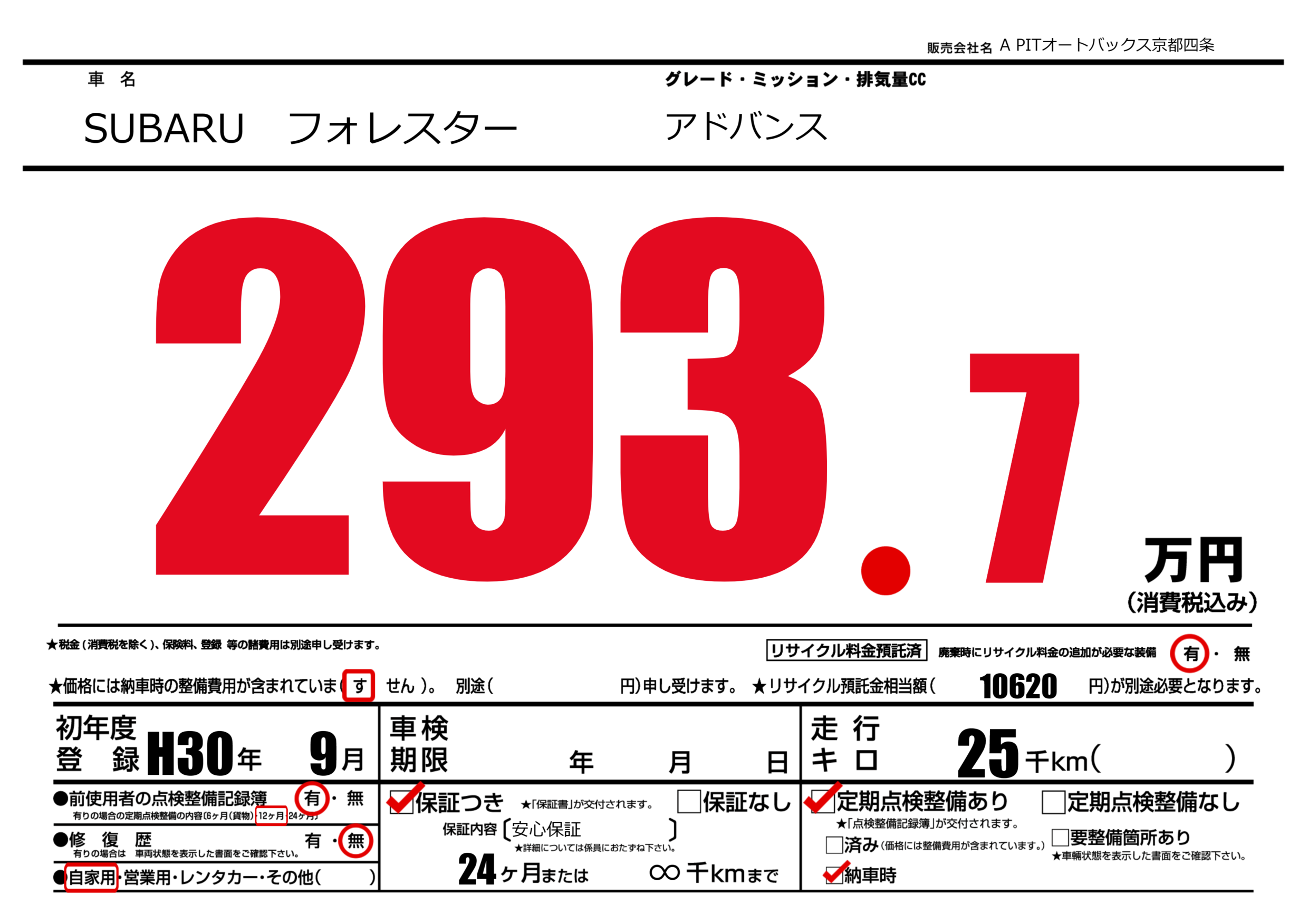 | 車名 | SUBARU フォレスター | グレード ミッション 排気量 |
