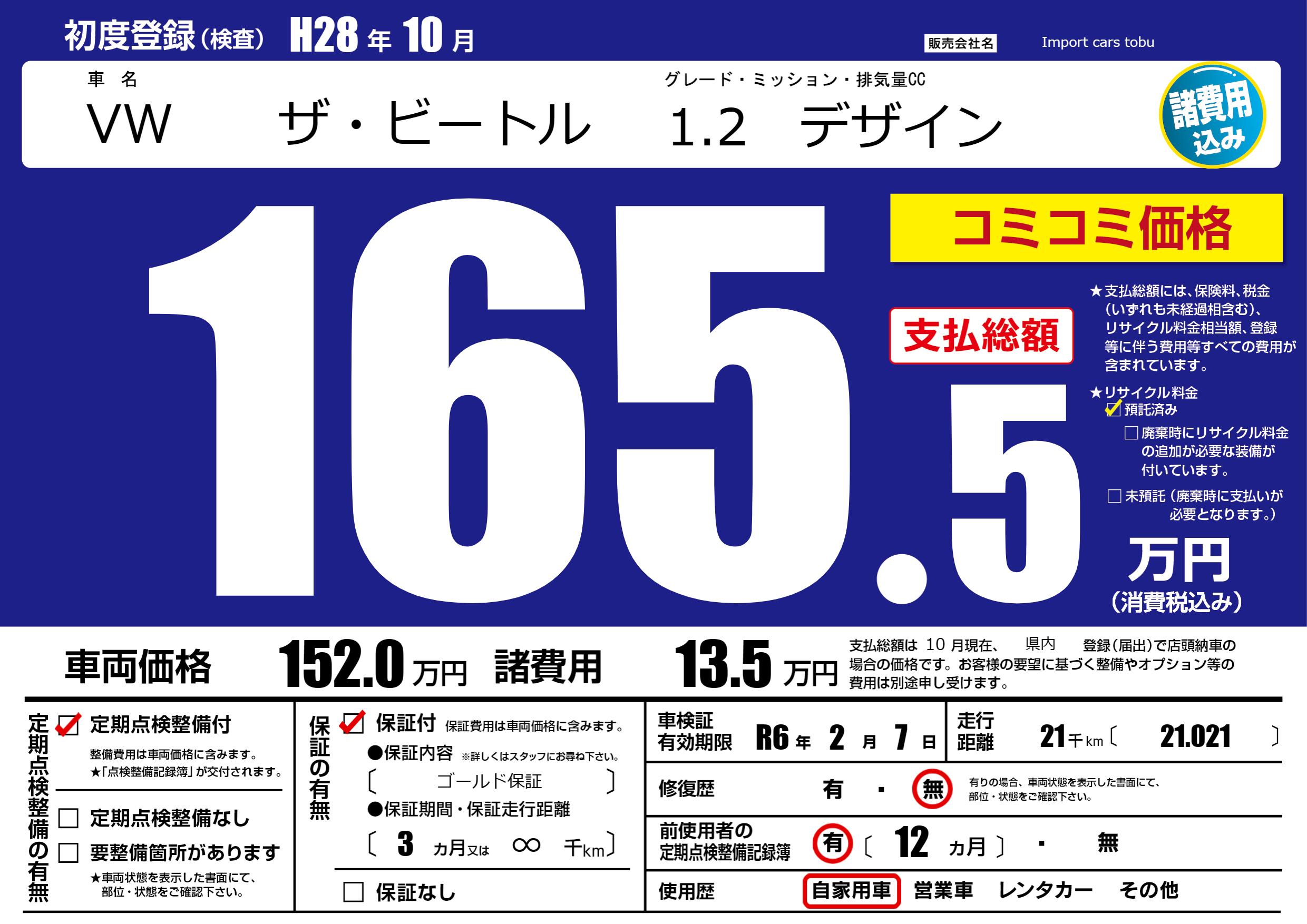 | 定期点検整備 | 定期点検整備あり | ||
