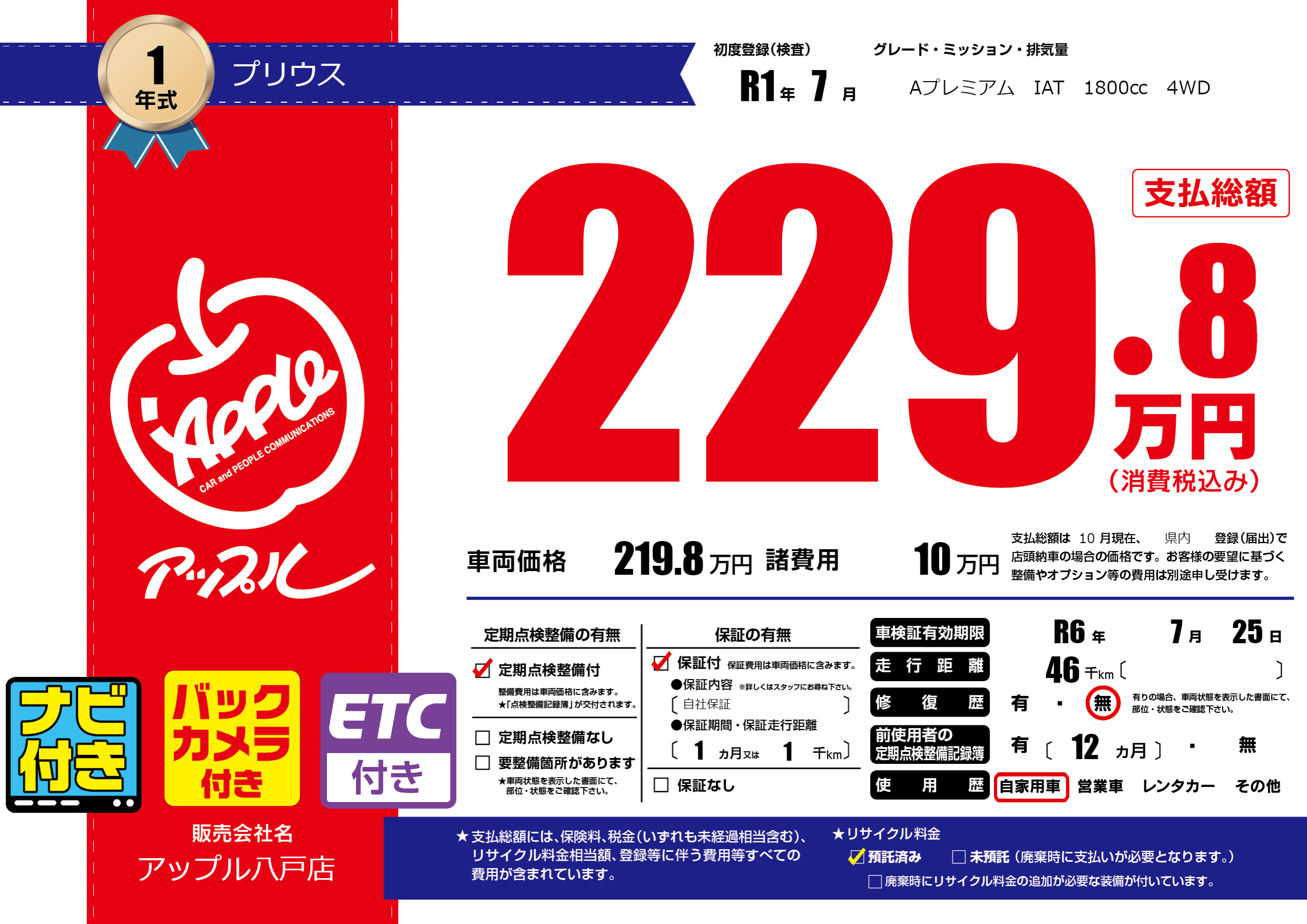| 車検制限 | R6年 7月 25日 | ||