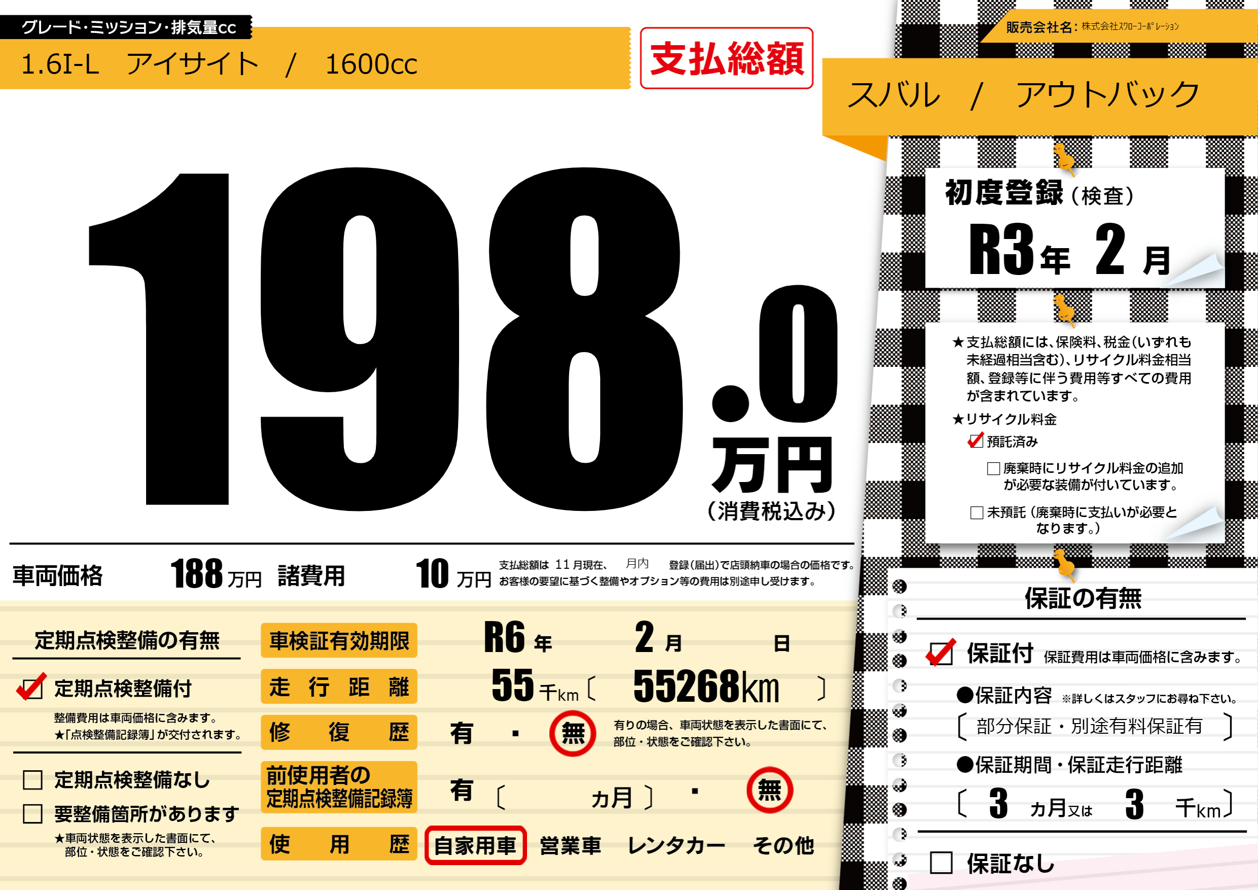 なし | 車検制限 | R6年2月---月 |