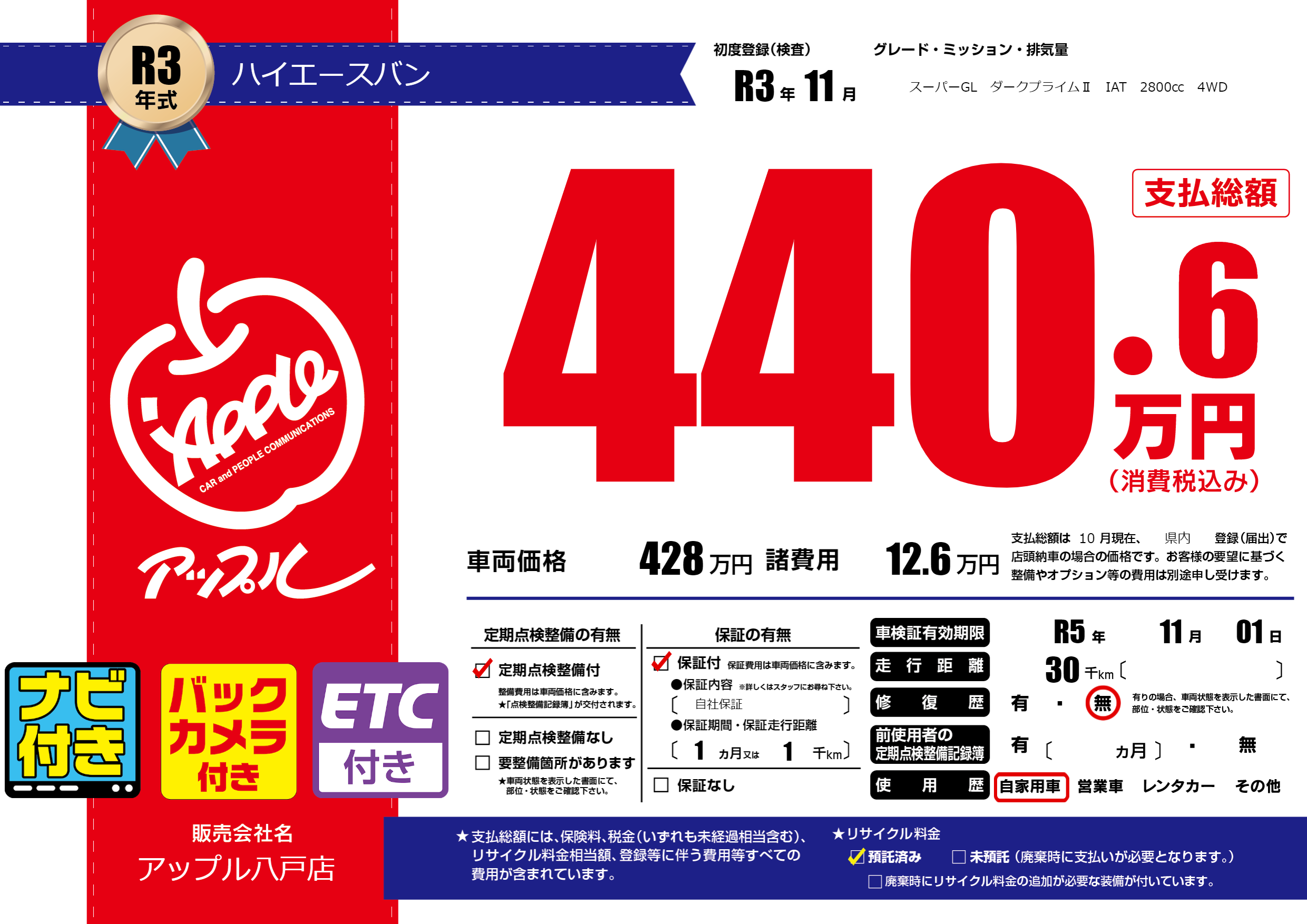 なし | 車検制限 | R5年11月01月 |