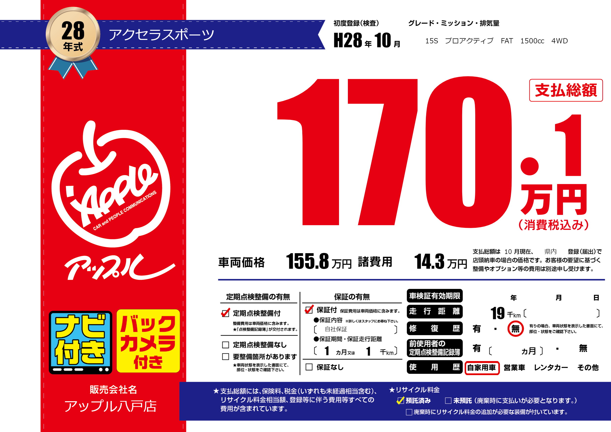 | 車名 | アクセラスポーツ | グレード ミッション 排気量 |